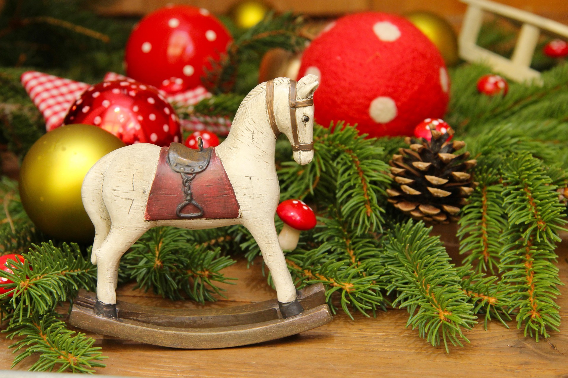 Dziewczyna ozdobiona gwiazdami i zabawkami choinkowymi