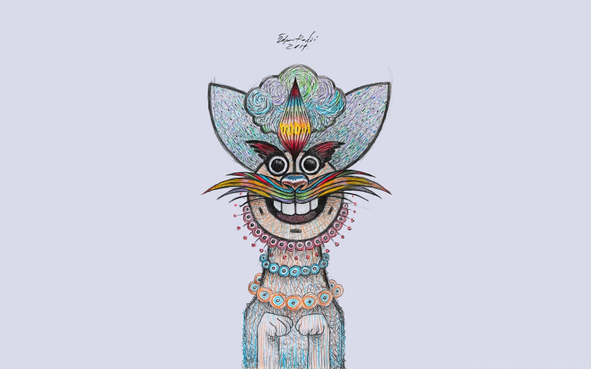 Kreatywny niezwykły rysunek czerwonego humanoida z rogami