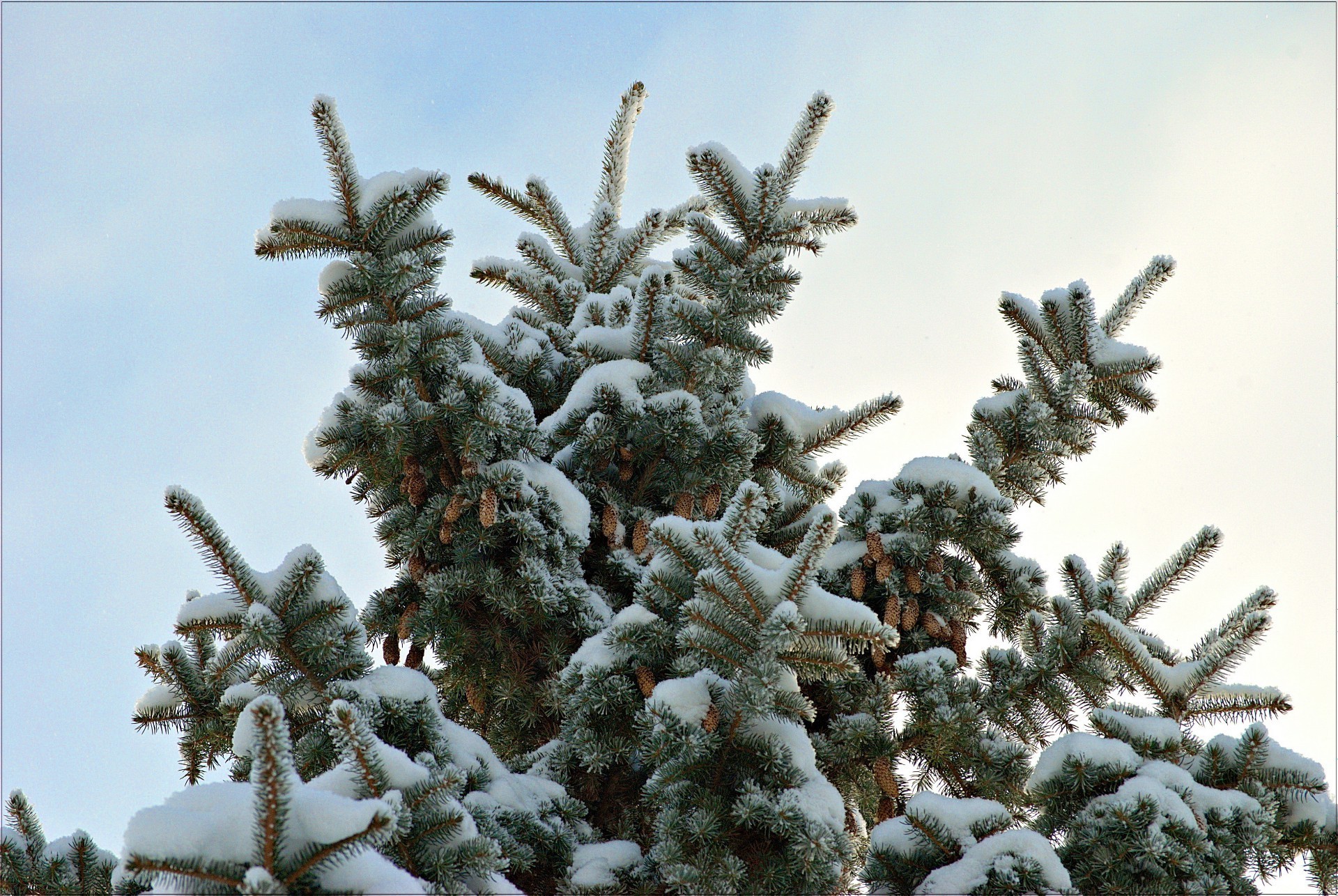 Piękna sosna pokryta śniegiem