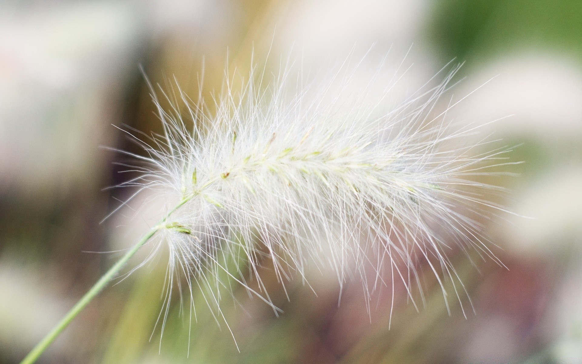 Fotografia makro puszystego białego źdźbła trawy