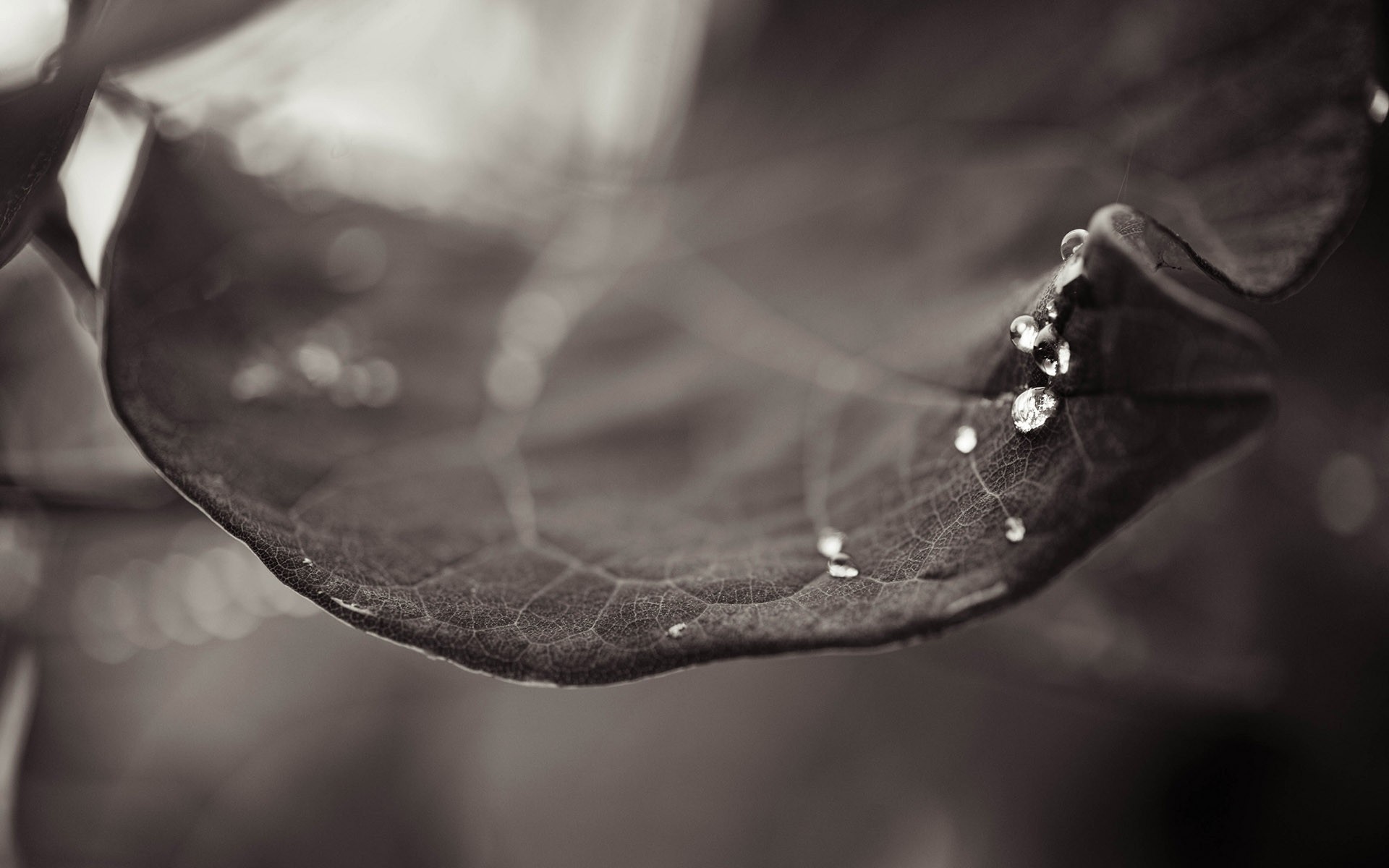 Monochromatyczny liść z kroplami deszczu
