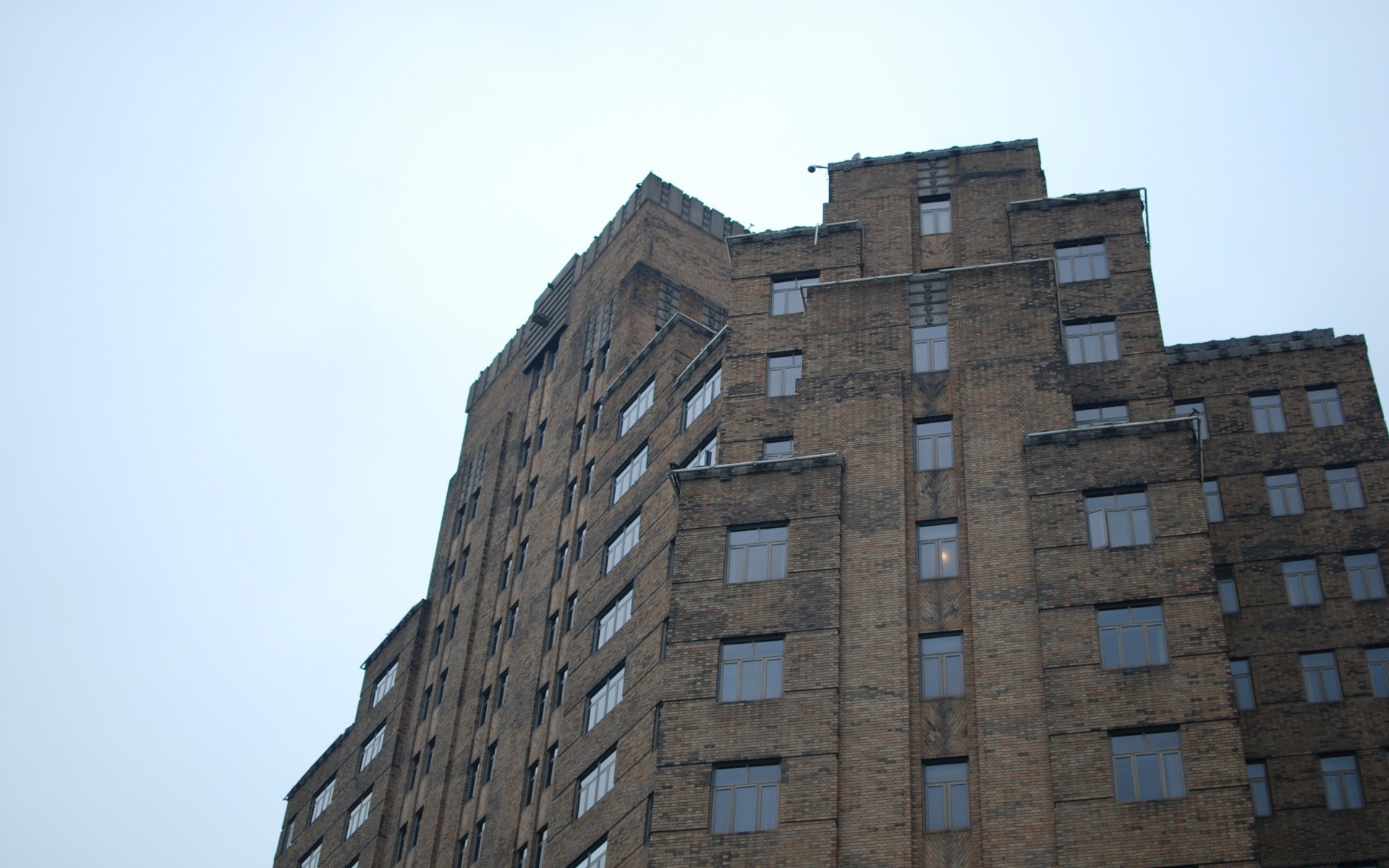 Szary wysoki dom na tle błękitnego nieba