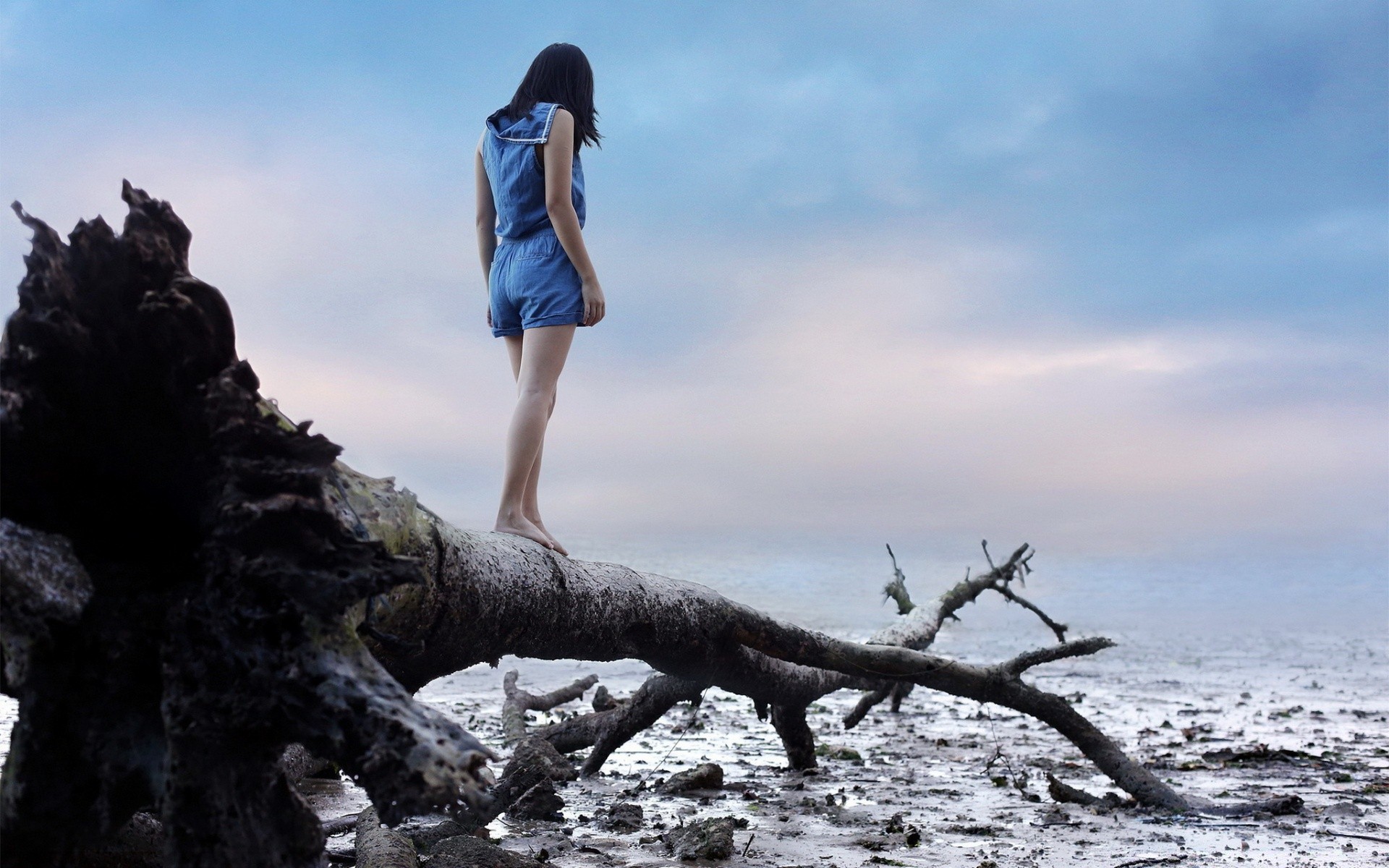Ryzyko. Dziewczyna na drzewie nad wodą