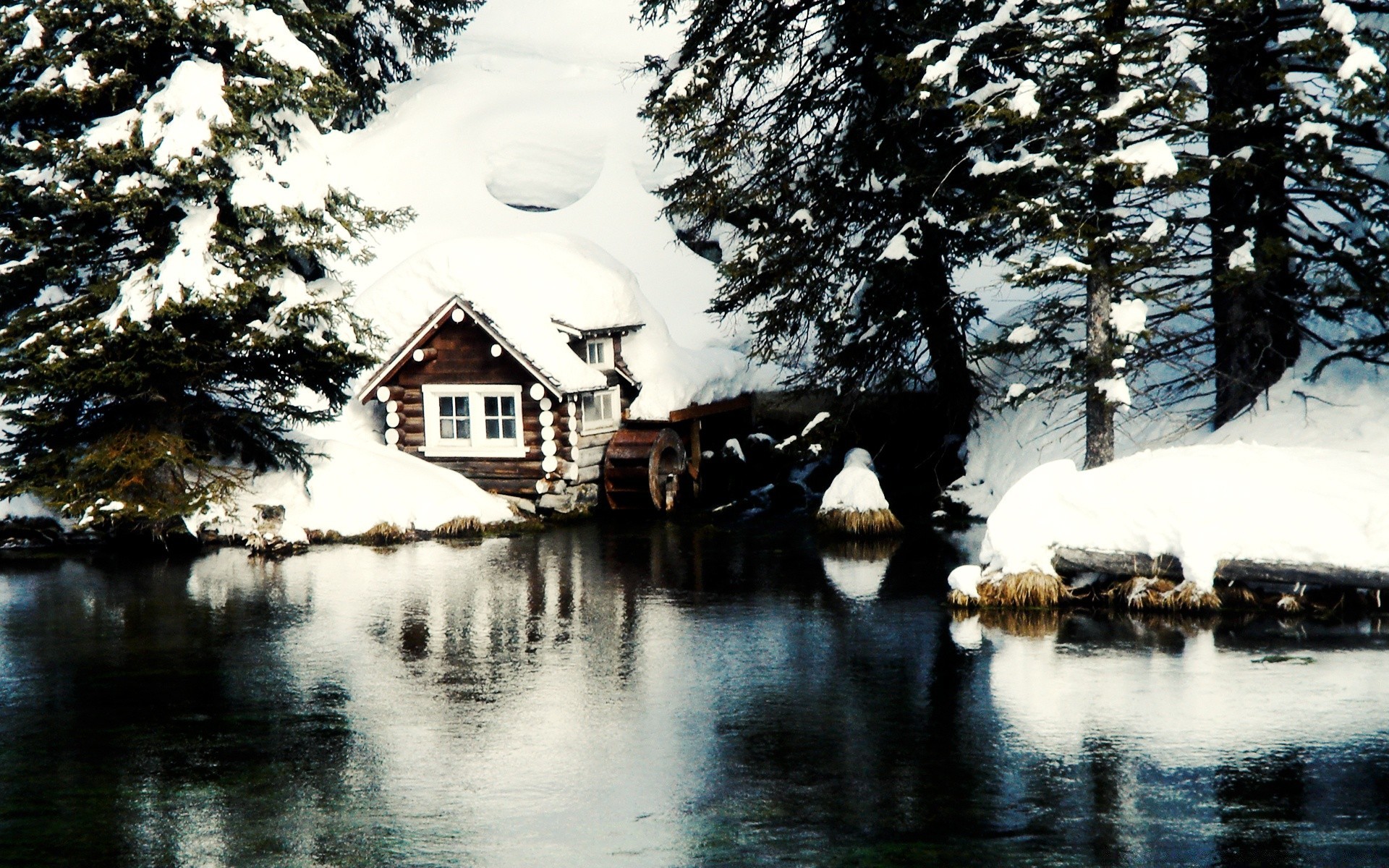 Drewniany domek w zimowym lesie