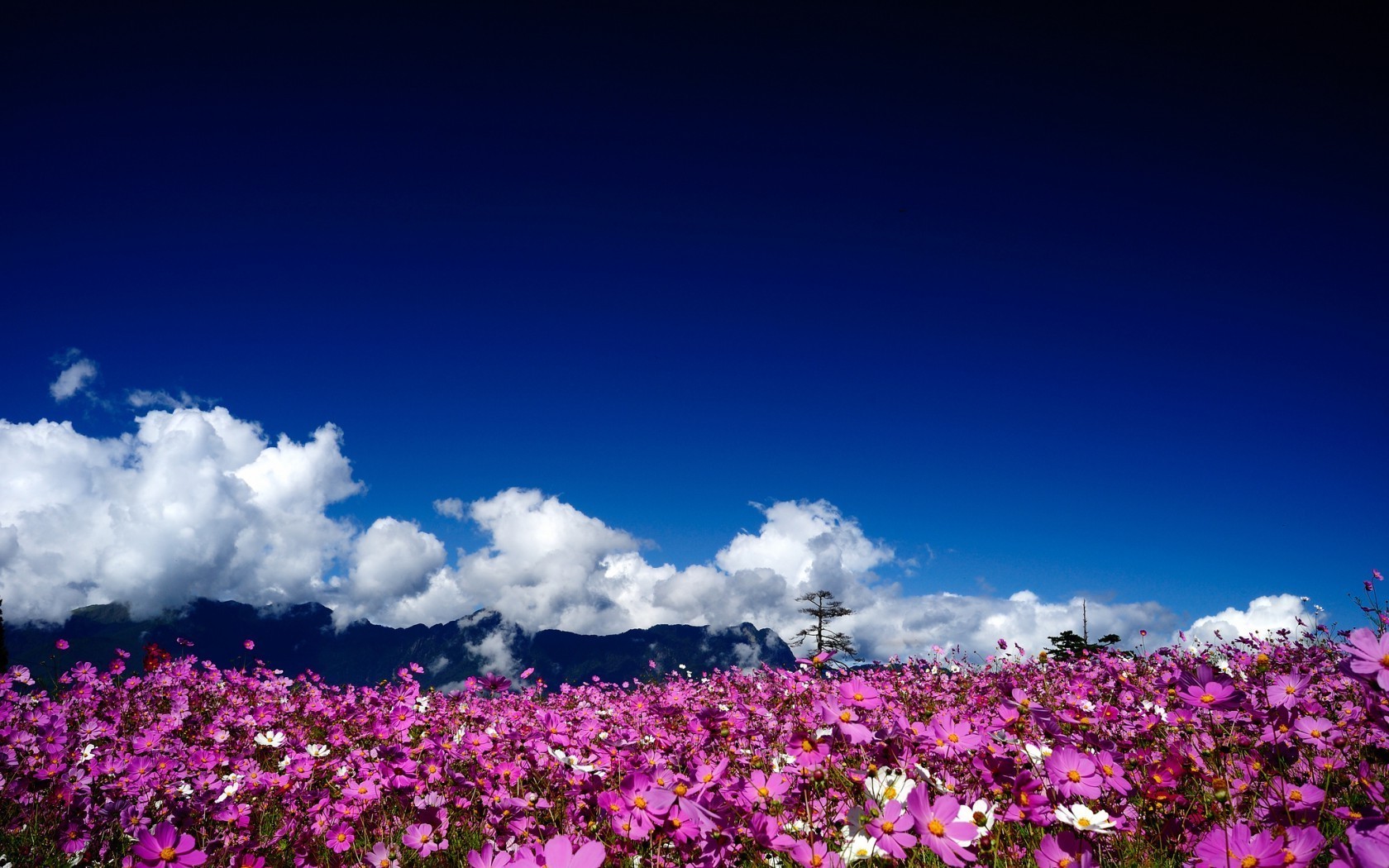 Krajobraz drzewa i chmur w odcieniach błękitu