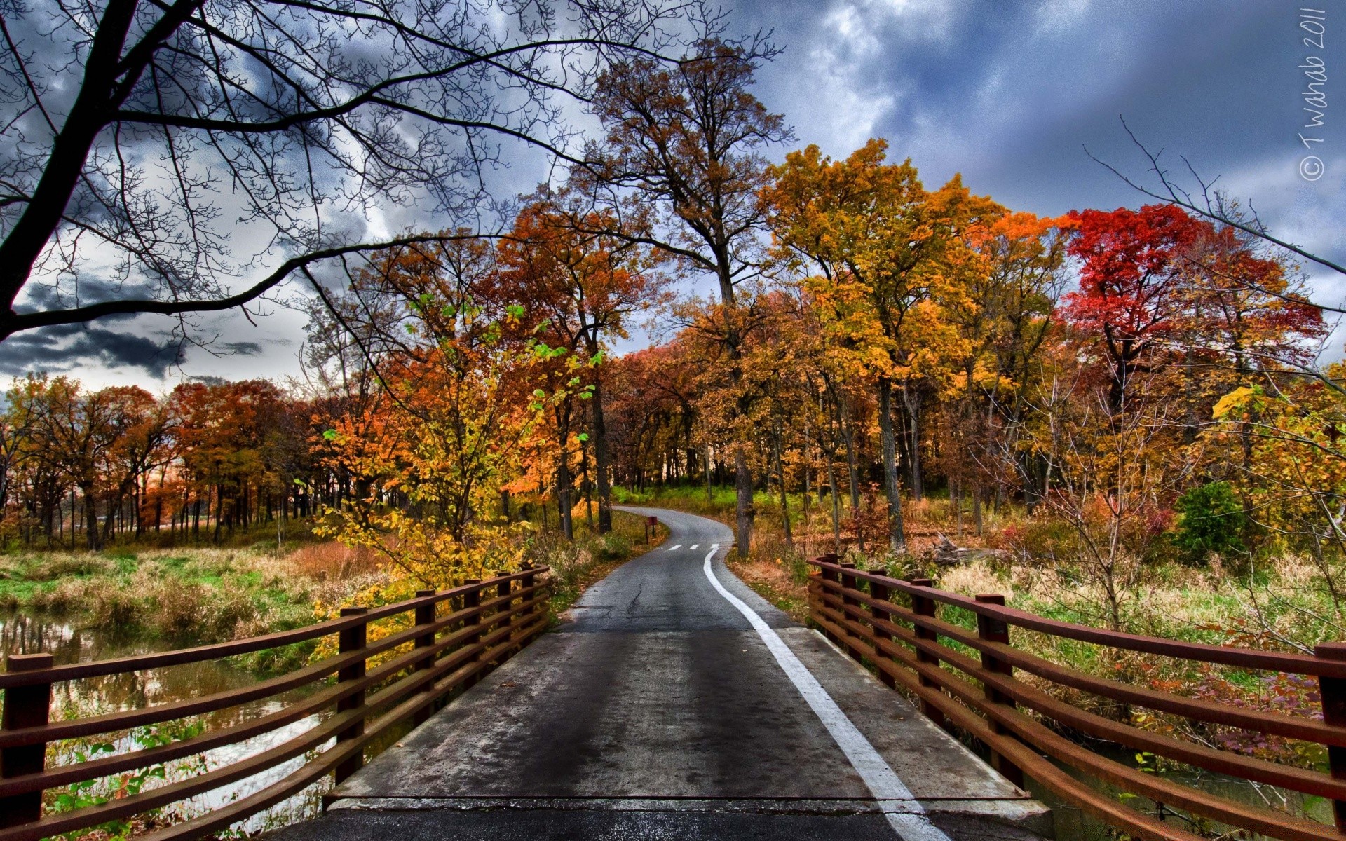 Jesienny krajobraz droga wśród drzew