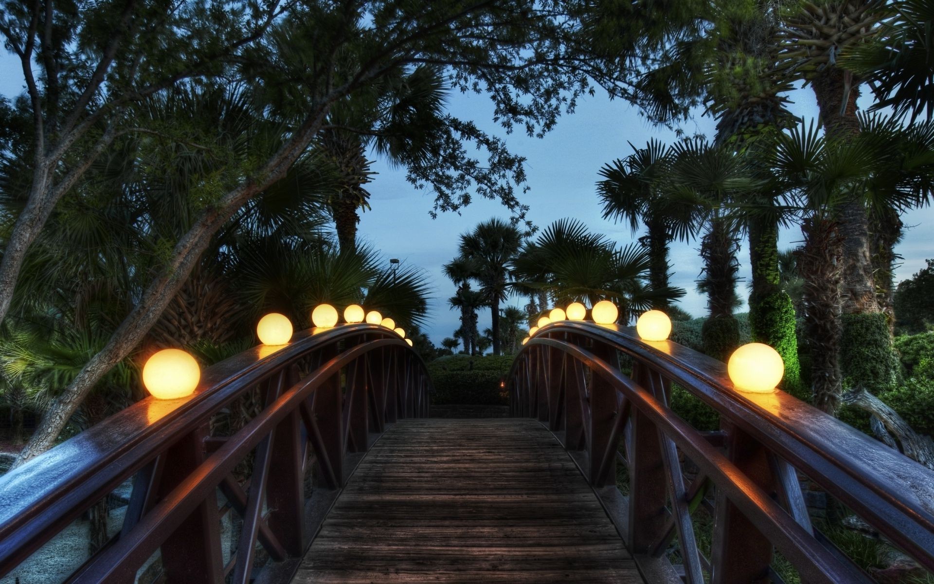 Piękny drewniany most. Drzewa egzotyczne