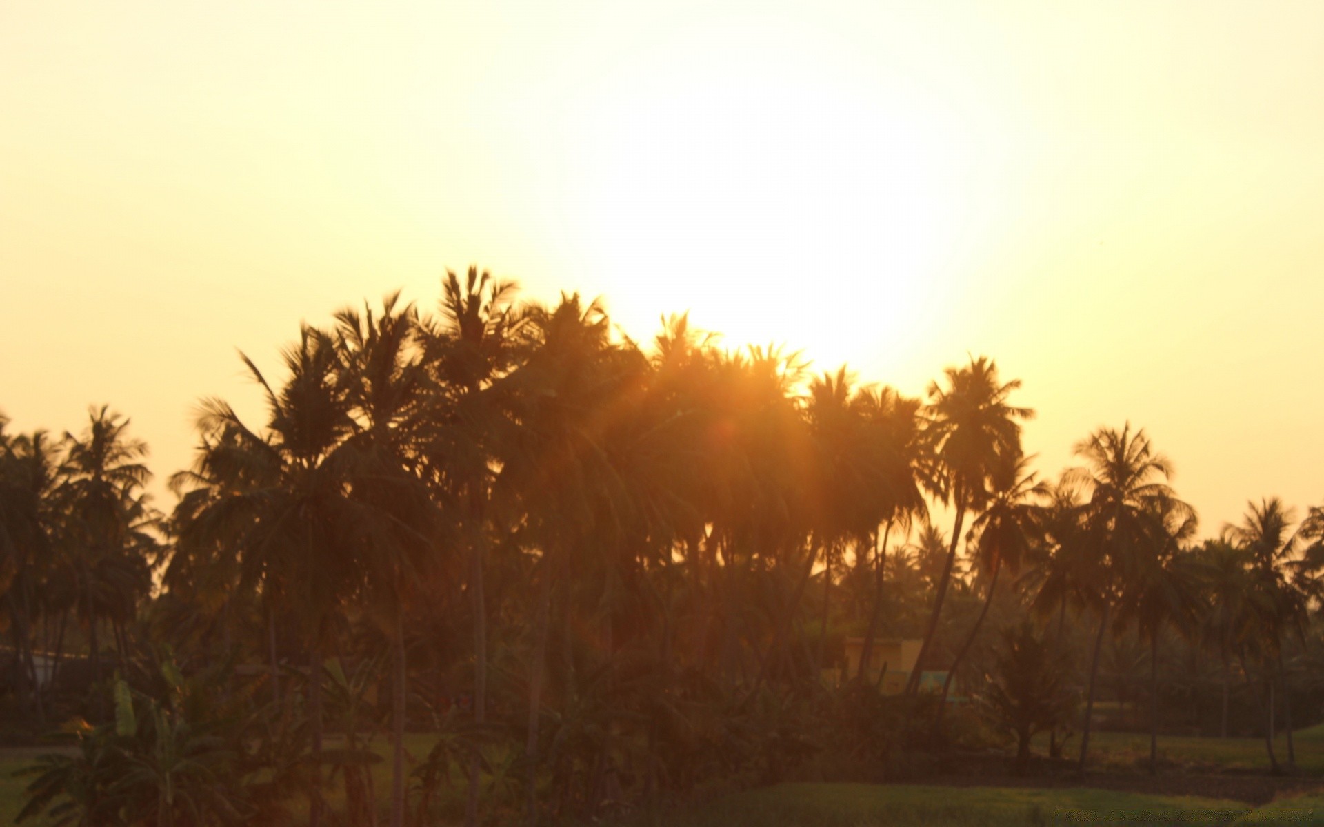 Drzewa pod ostatnimi promieniami zachodzącego słońca