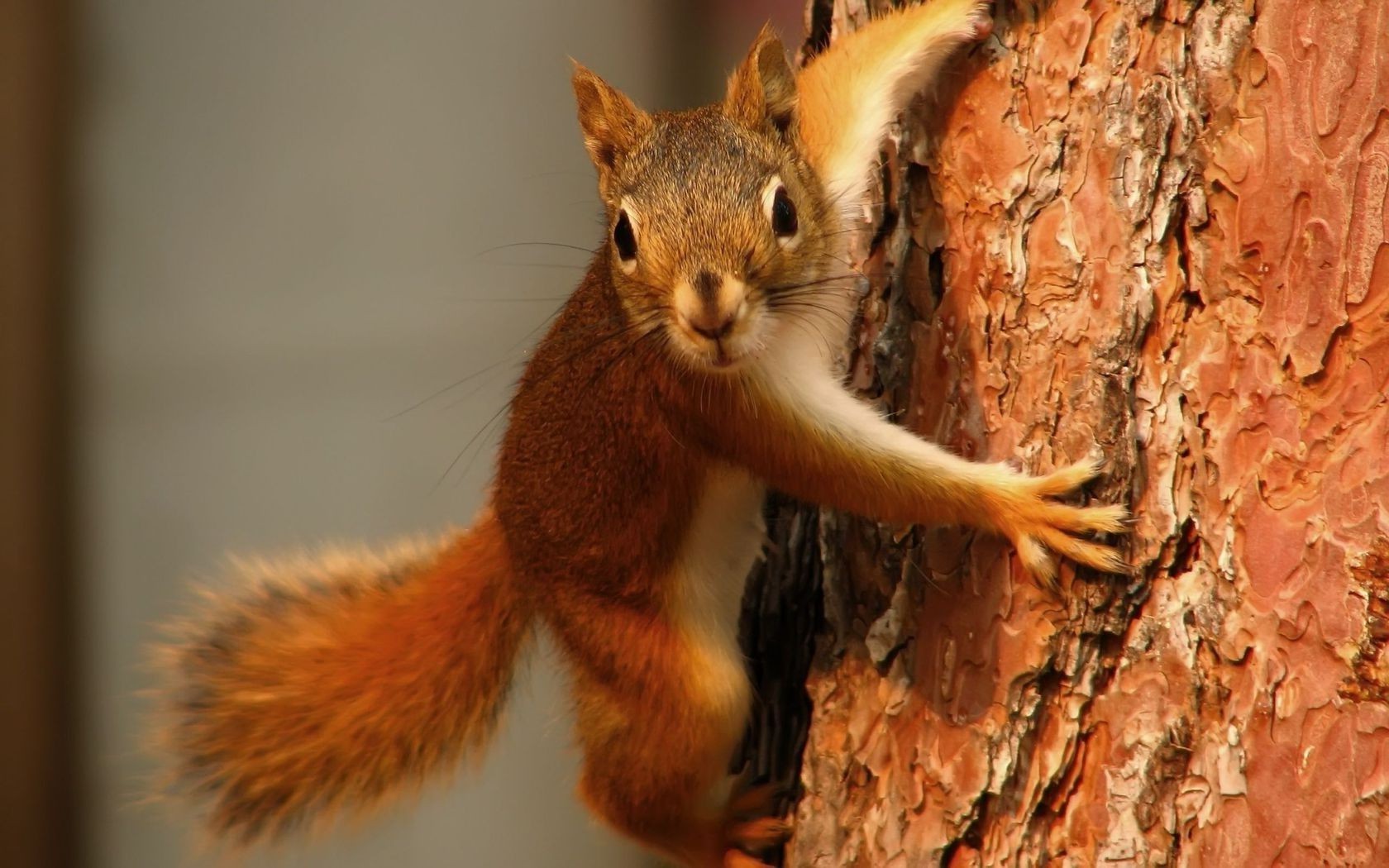 Ciekawa wiewiórka na pniu drzewa