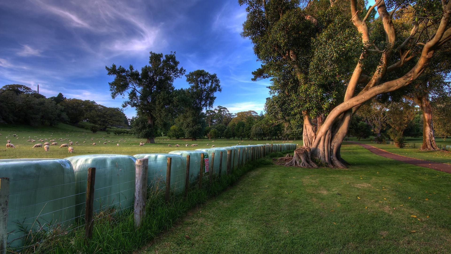 Jesienne drzewo za ogrodzeniem z drutu