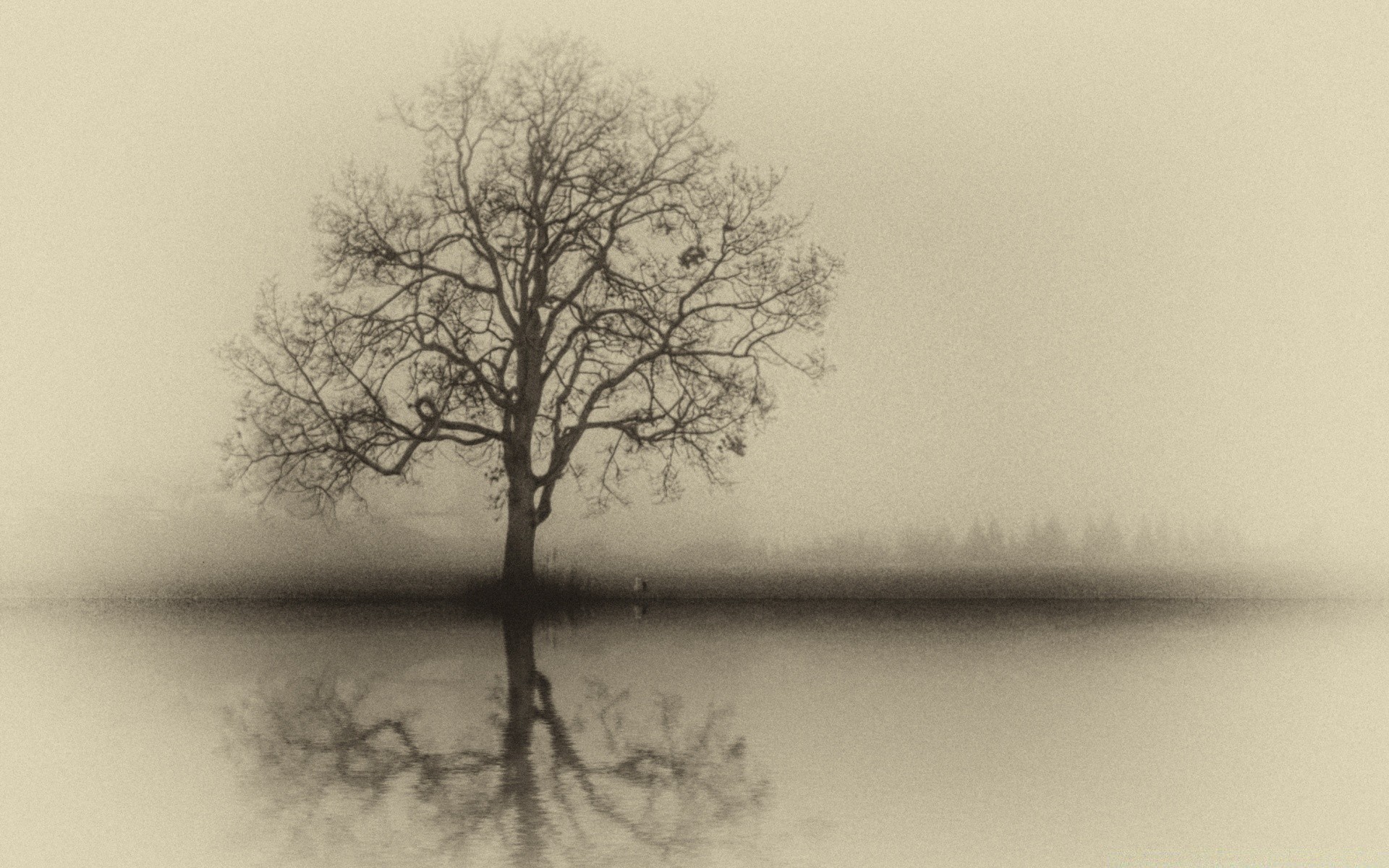 Samotne drzewo we mgle, klasyczna wersja czarno-biała