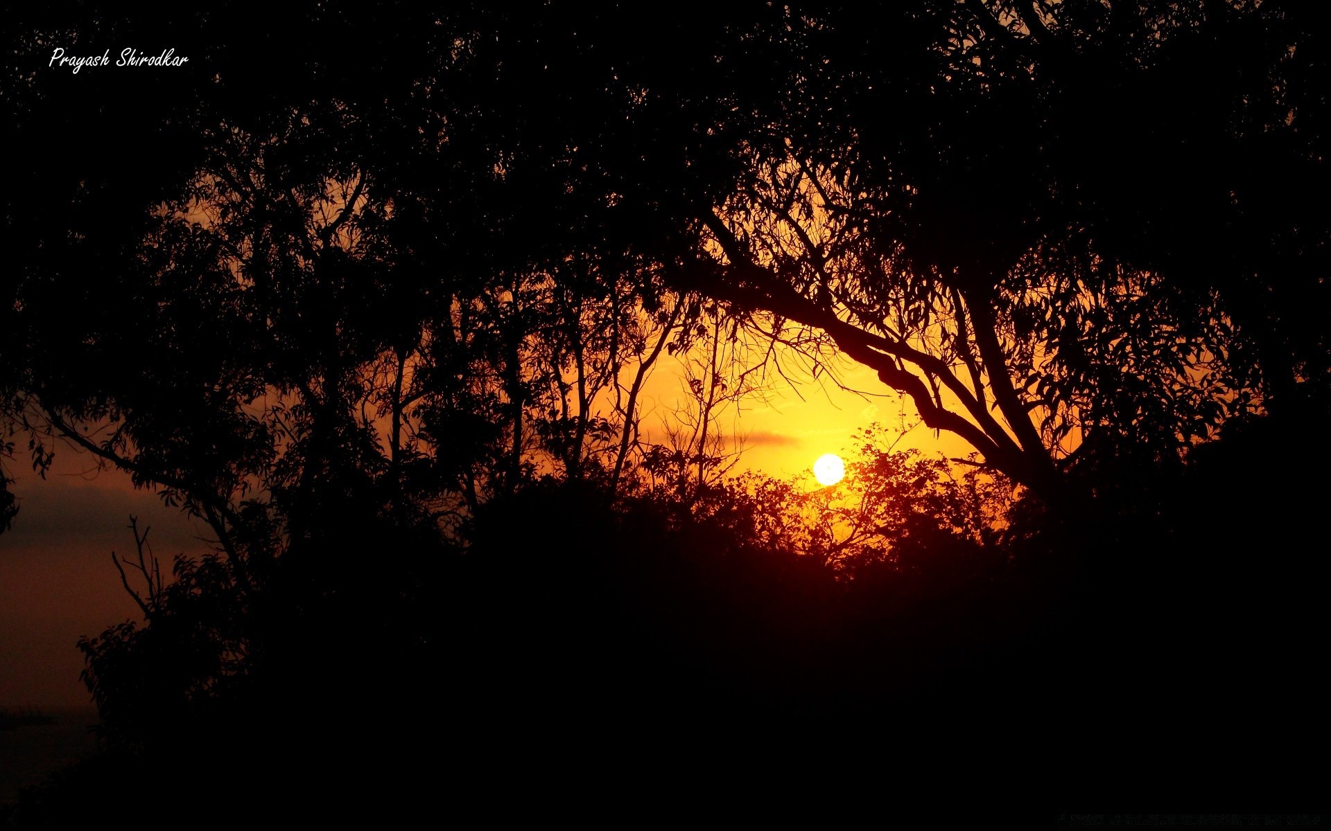 Pomarańczowy świt oświetlający drzewo