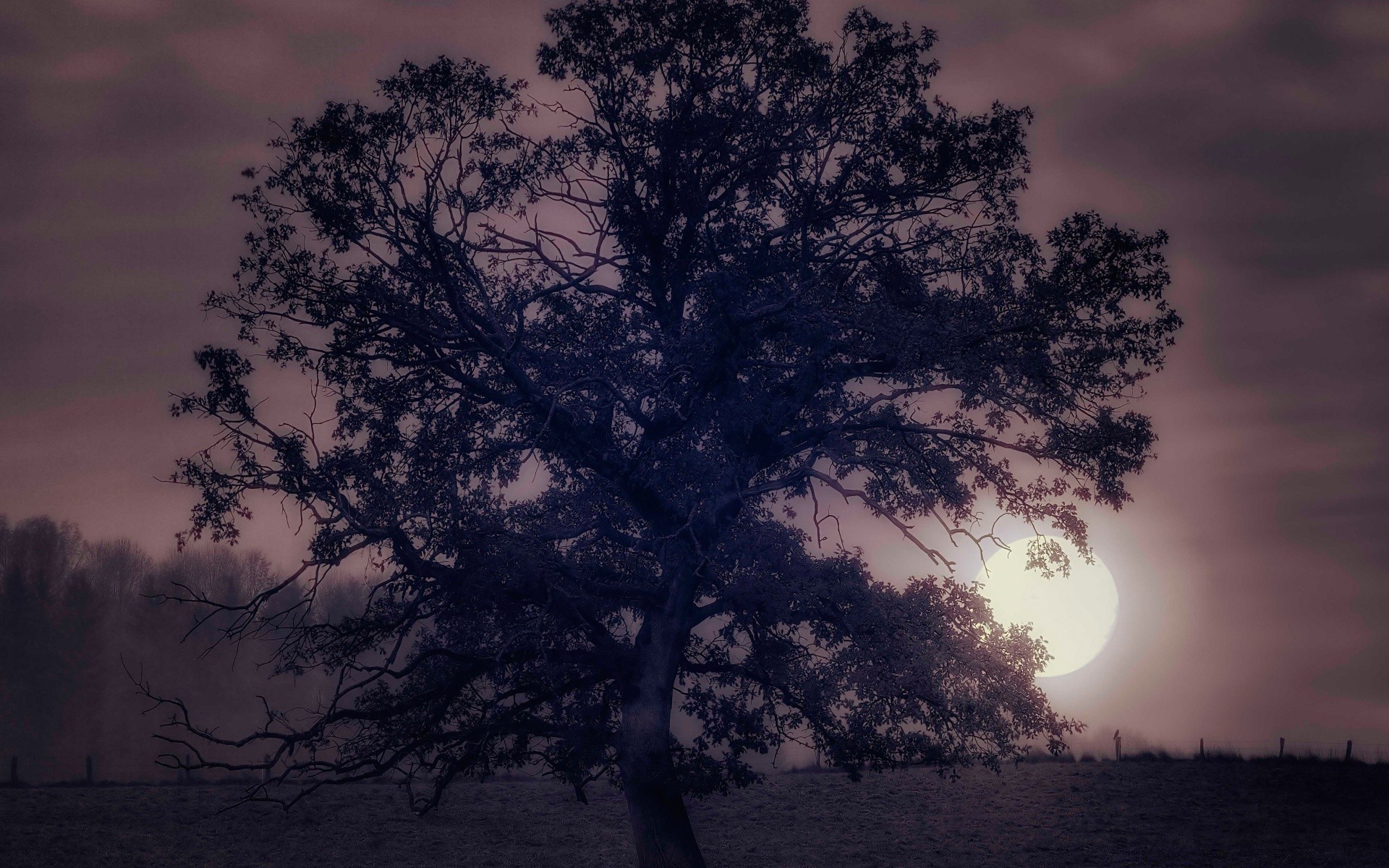 Drzewo w jesiennym lesie z ognistymi liśćmi