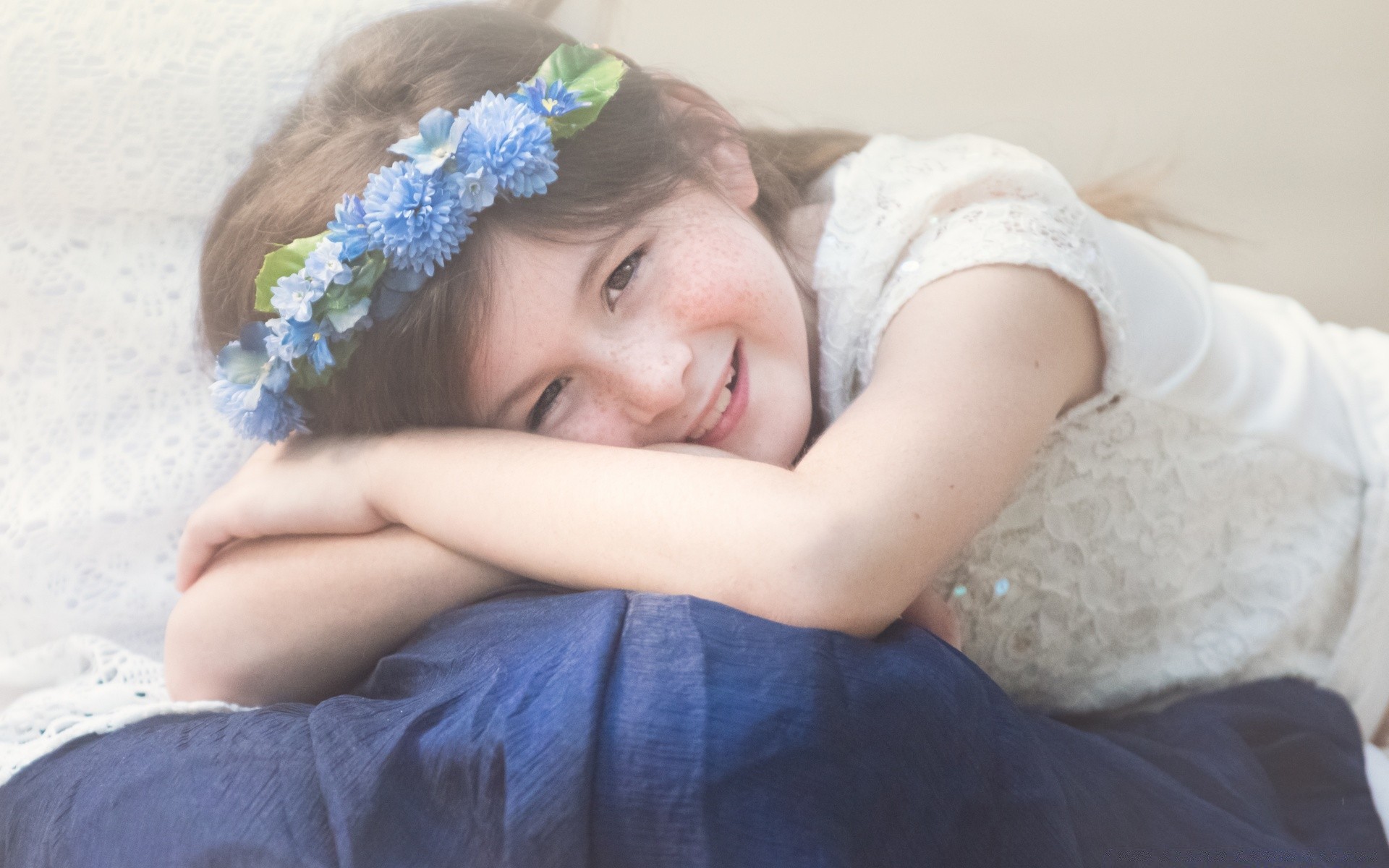 Dziewczynka siedzi na parapecie i patrzy przez okno