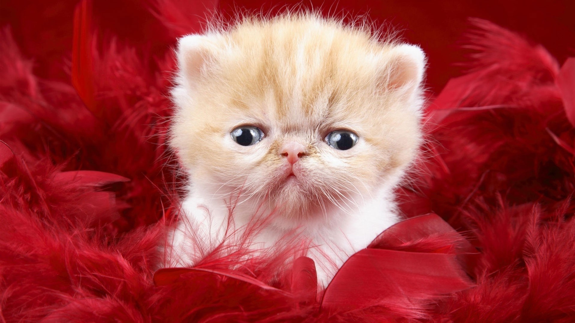 Śliczny kotek na czerwonym tle