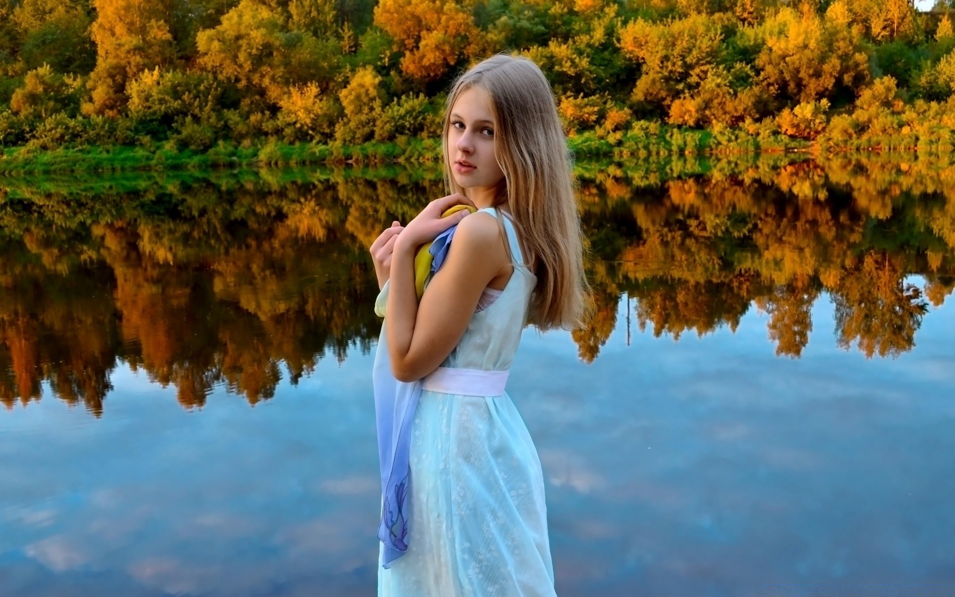 Dziewczyna na tle jesiennego krajobrazu
