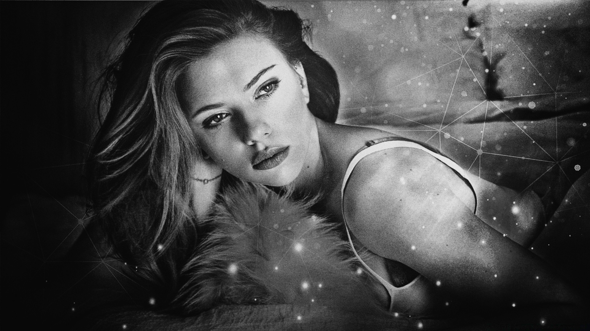 Monochromatyczny portret dziewczyny w gwiazdach na czarnym tle