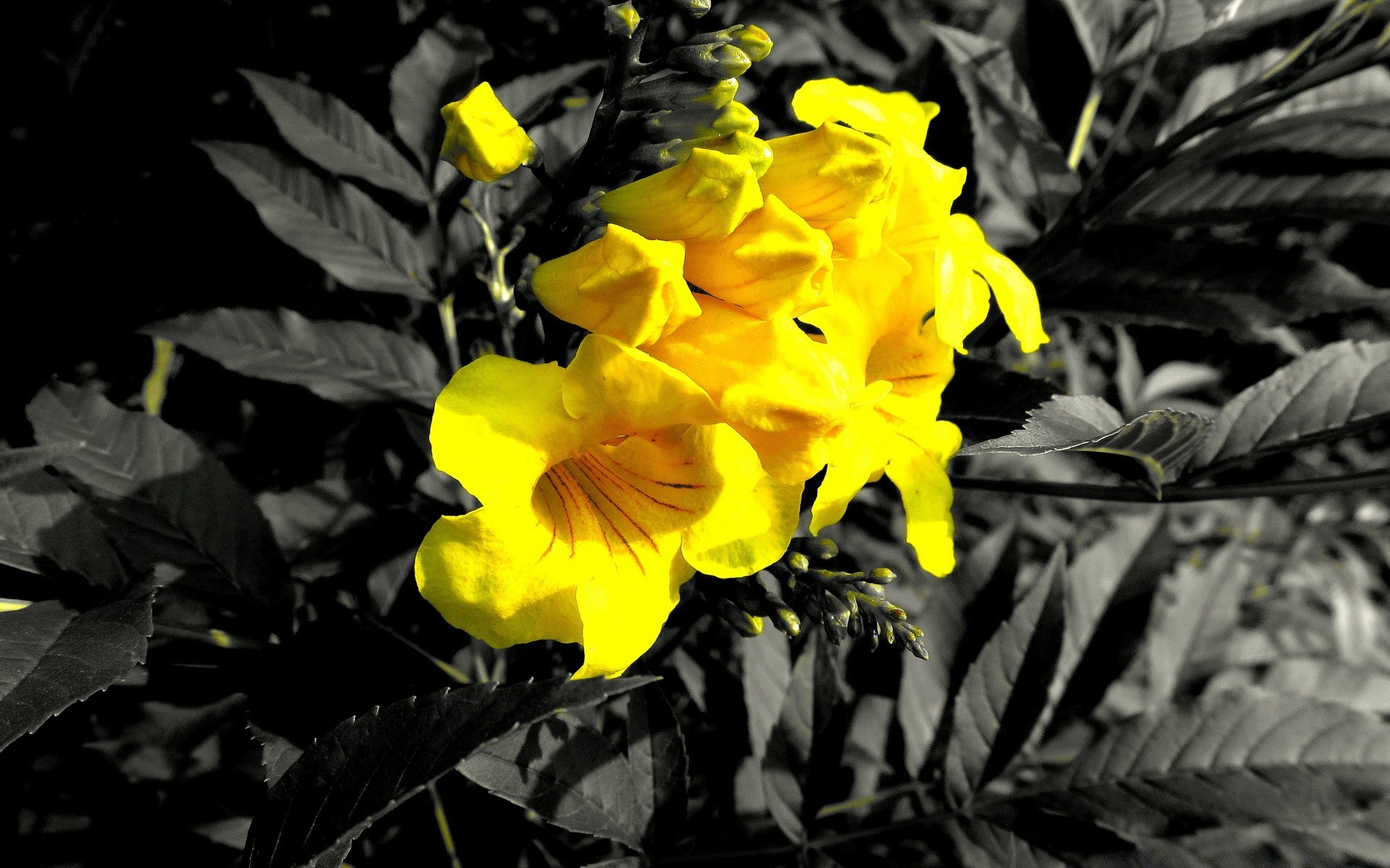 Kwiaty ogrodowe z żółtymi pąkami i zielonymi łodygami