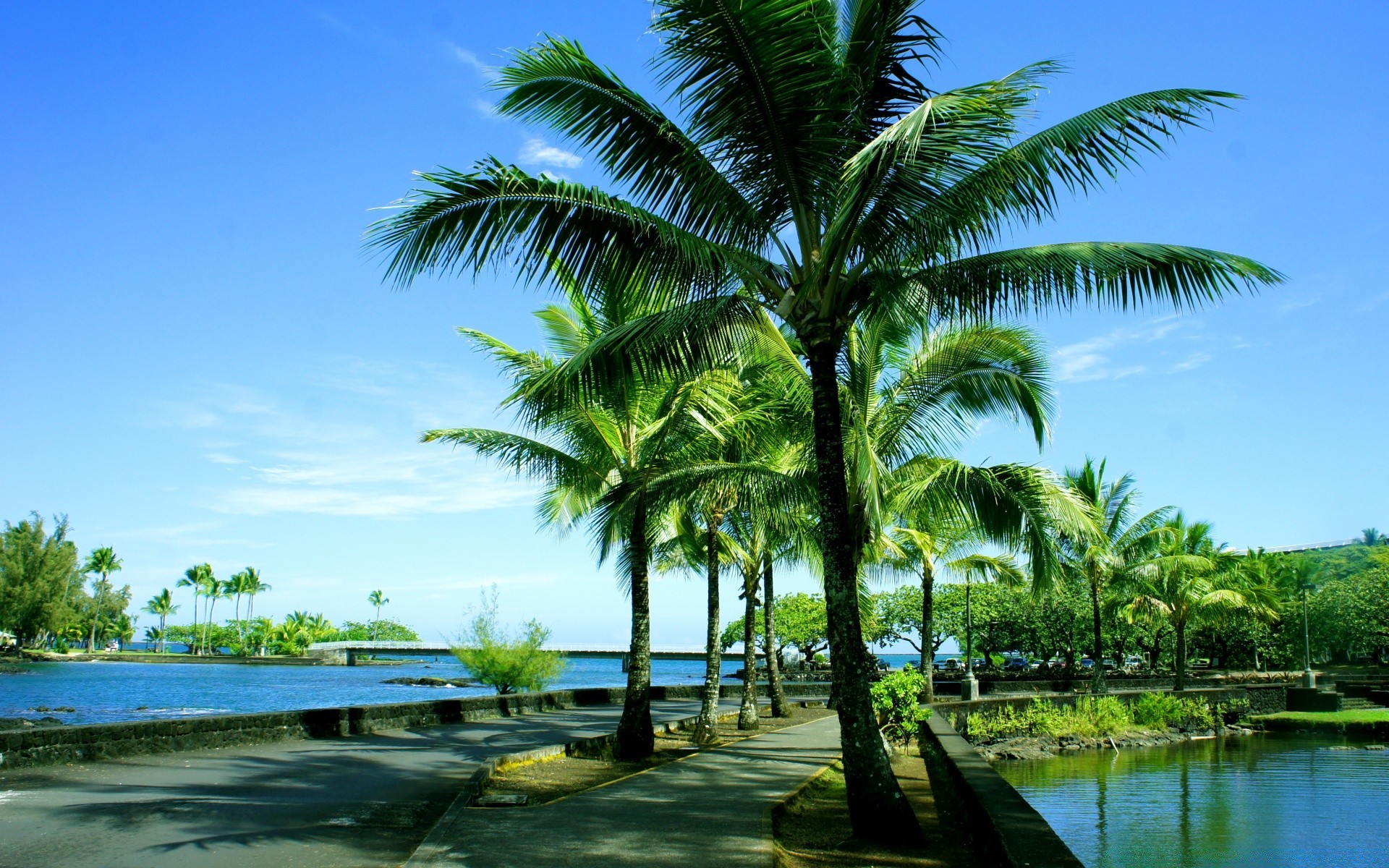 Ludzie odpoczywają na plaży pod palmami nad morzem