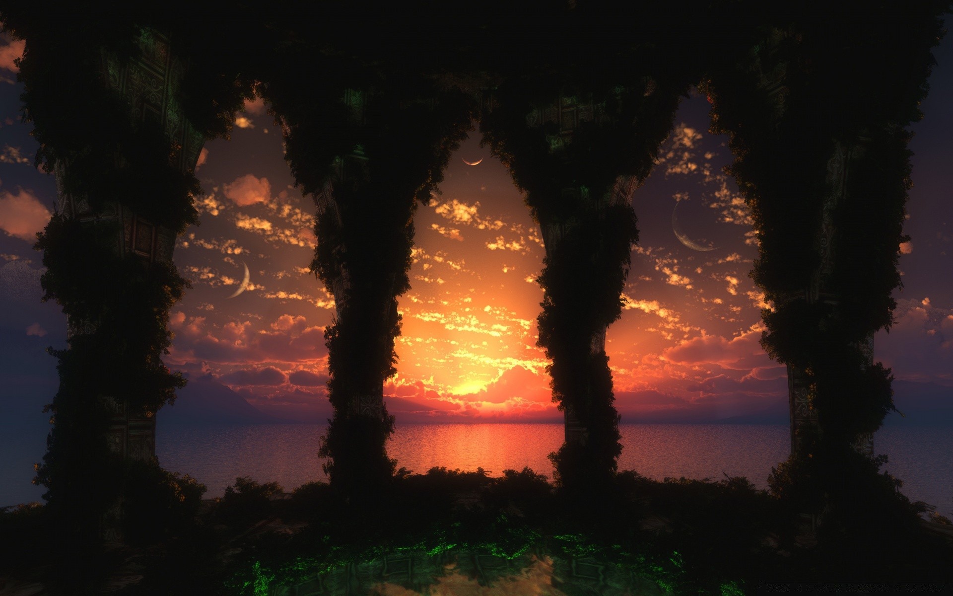 Piękny zachód Słońca w łuku nad morzem
