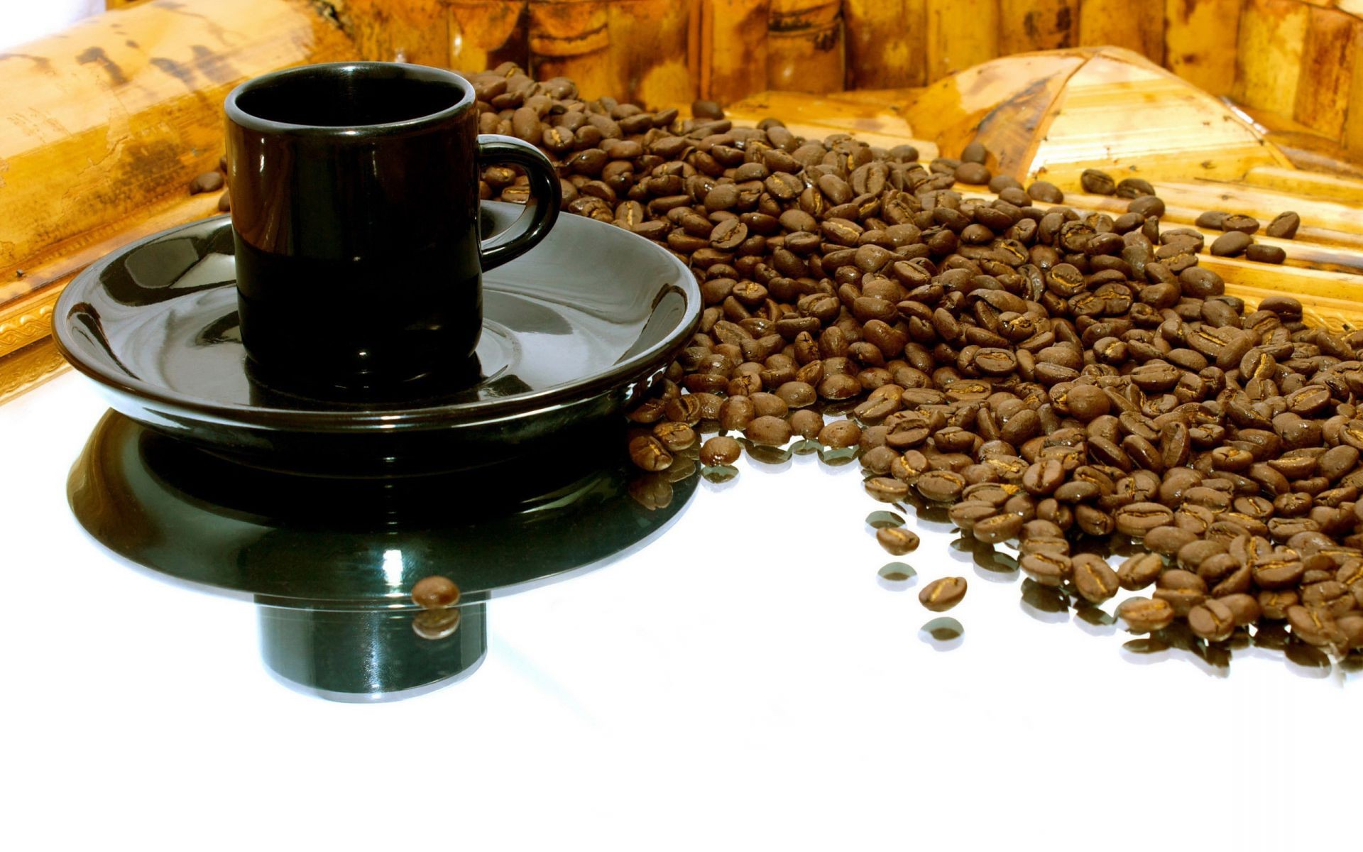 Kubek z ziarnami kawy na stole