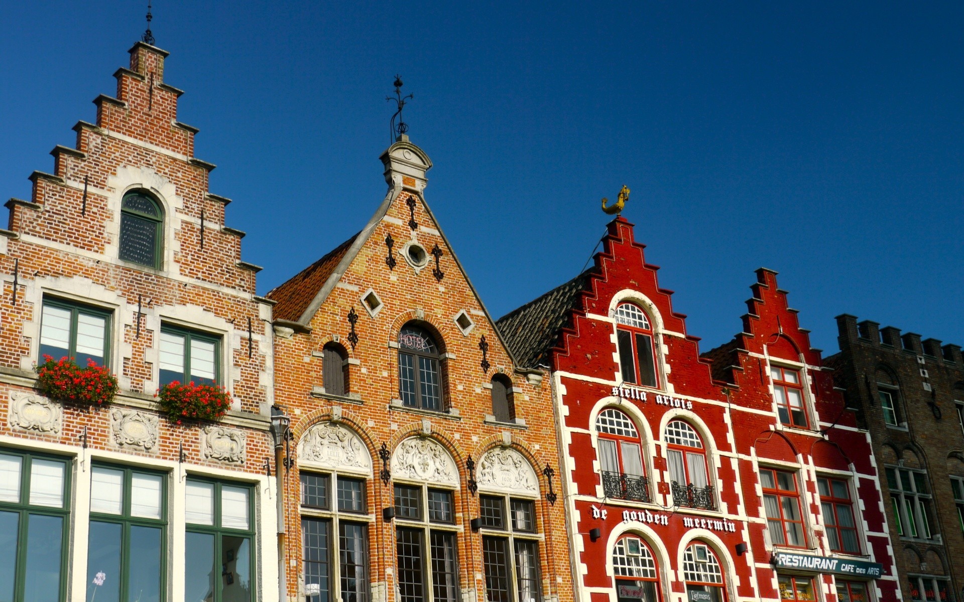 Domki w Belgii. Architektura Brugii. Stara Europa