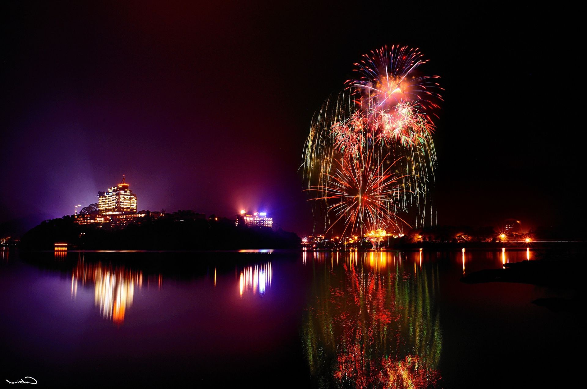 Uroczysty pokaz sztucznych ogni nad wieżowcami miasta