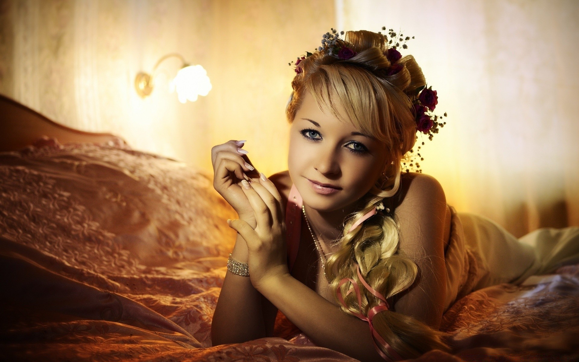 Dziewczyna na łóżku. Bielizna