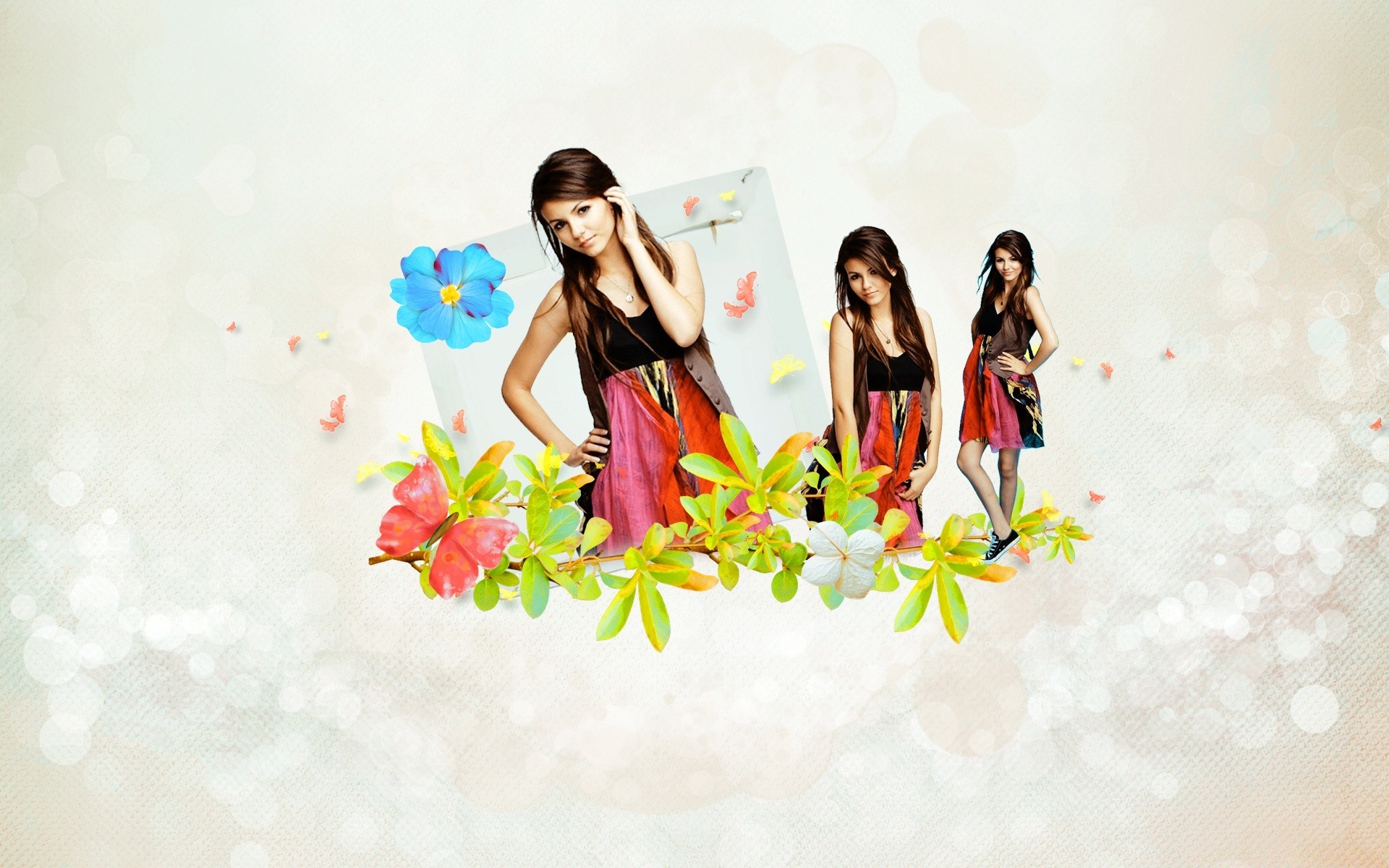 Uśmiechnięta dziewczyna blondynka w niebieskiej sukience