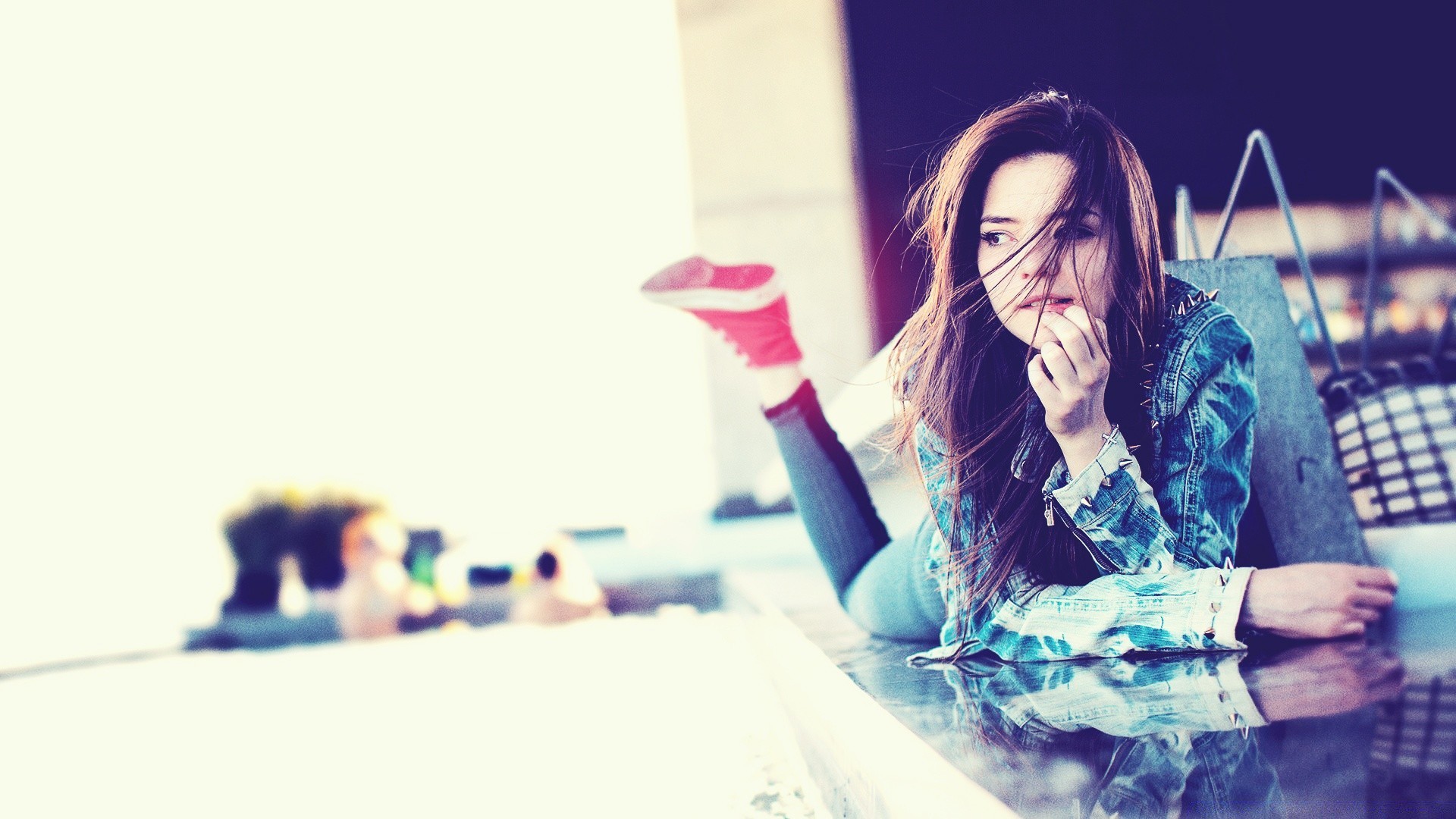 Dorosła dziewczyna w czerwonych trampkach