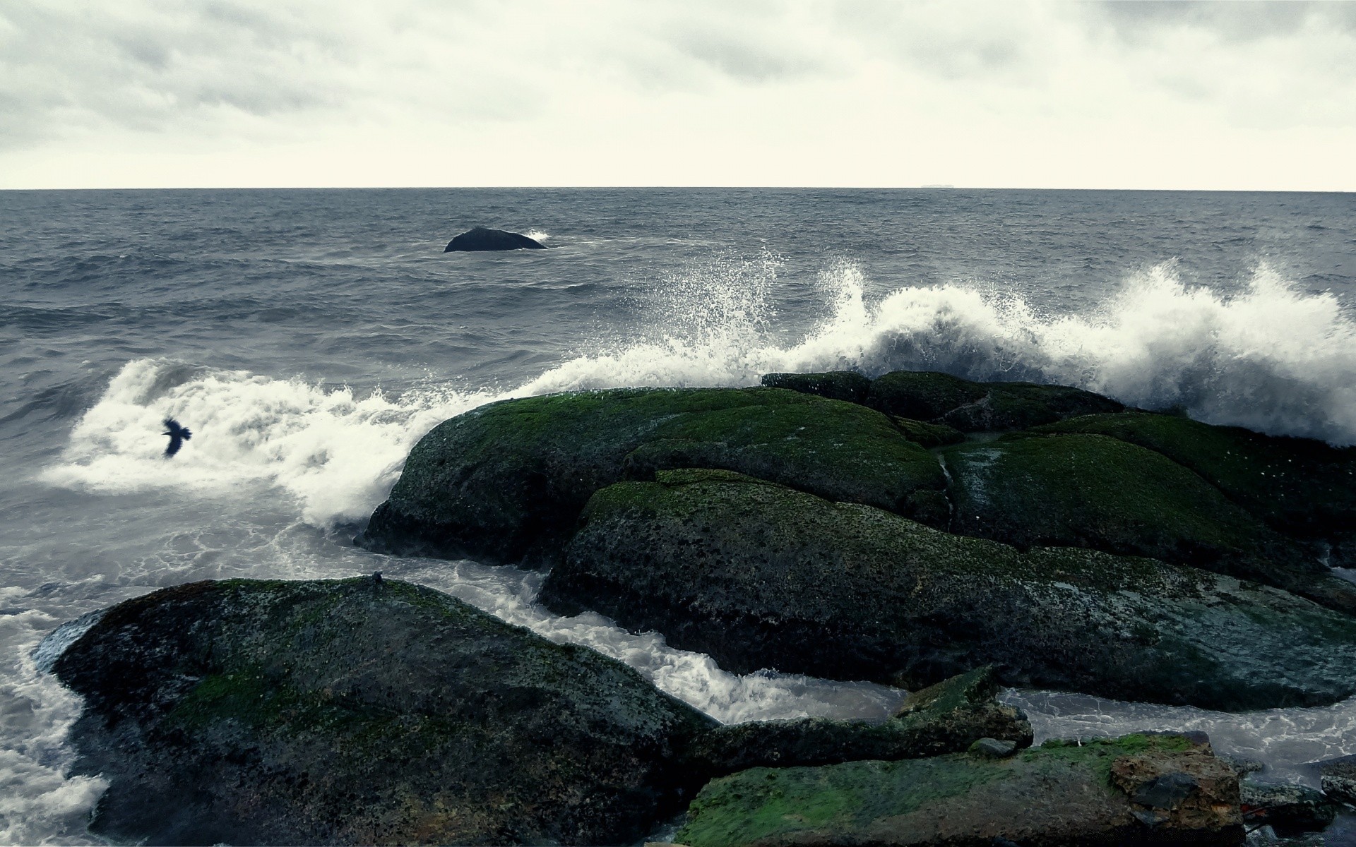Fale morskie rozbijają się o skały z dużą ilością rozprysków