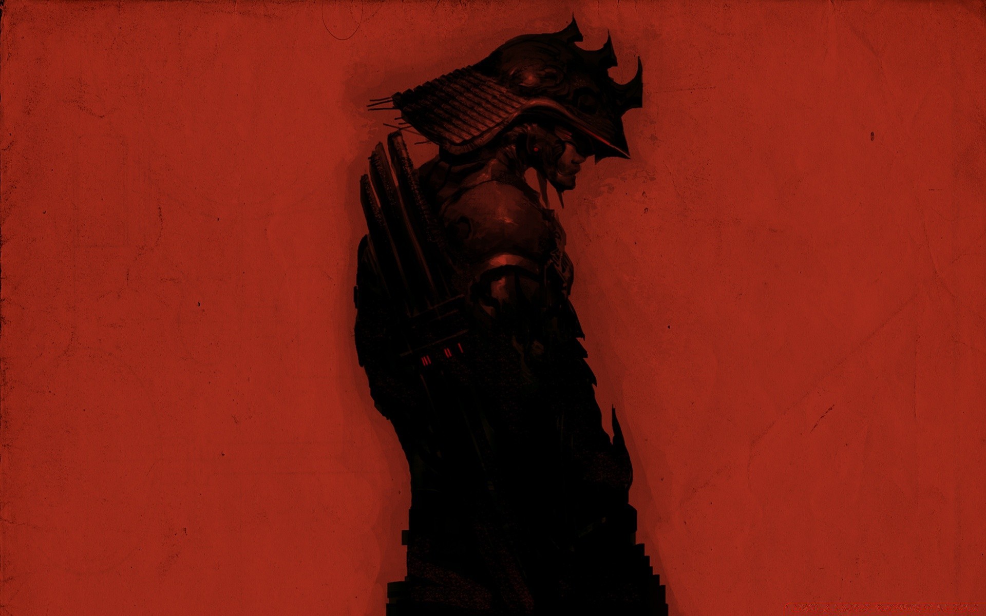 Fantasy, rudowłosy bohater w hełmie z rogami, trzymający w dłoni japoński mieczFANTASY, rudowłosy bohater w hełmie z rogami, trzymający w dłoni japoński miecz