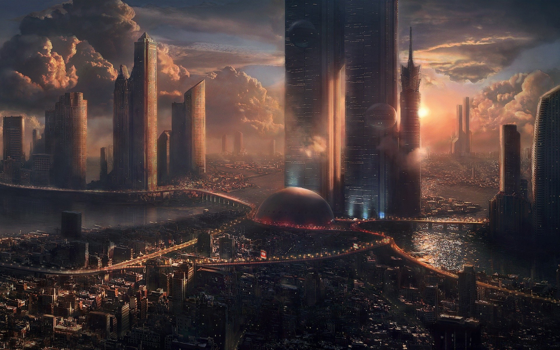 Sylwetka mężczyzny w pobliżu opuszczonego miasta