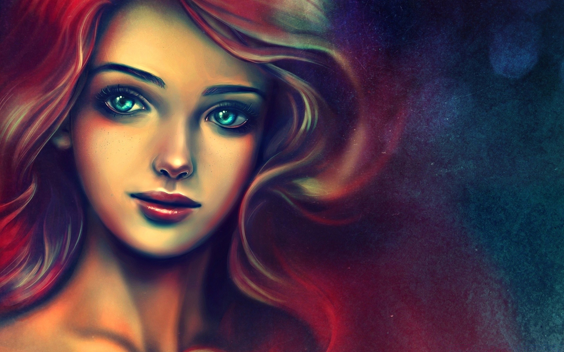 Słodka dziewczyna z czerwonymi włosami i zielonymi oczami. Ilustracja