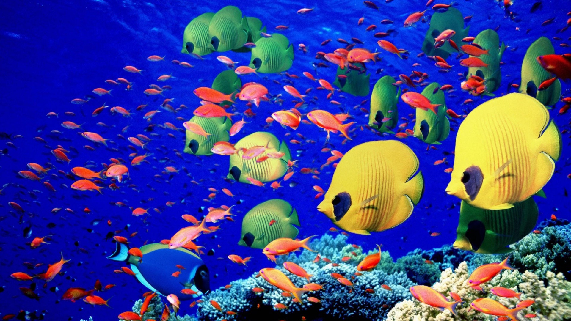 Tropikalna wyspa na środku oceanu, dużo wody i ryby pływają