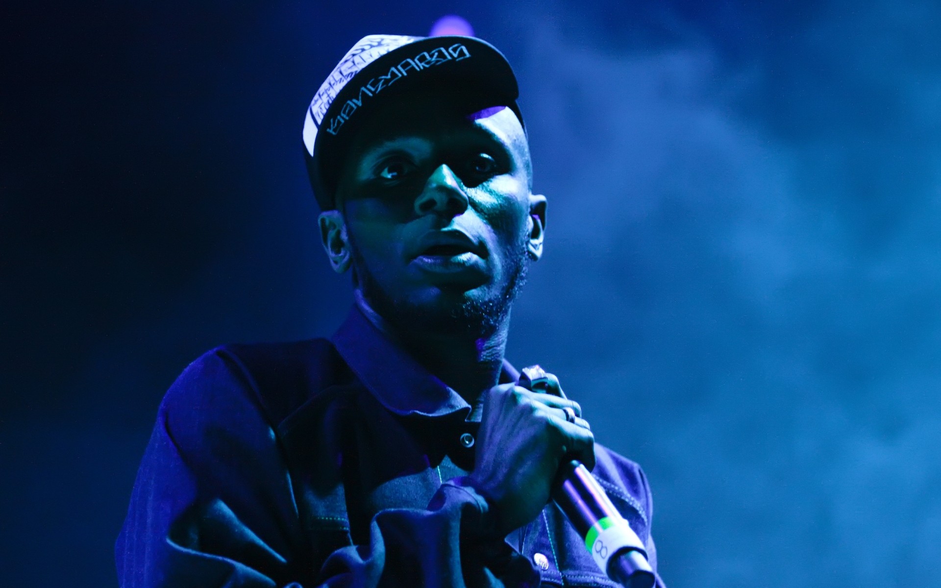 Mężczyzna muzyk na koncercie przy mikrofonie