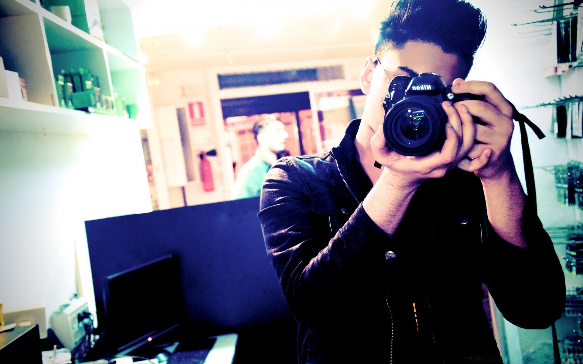 Facet kieruje obiektyw aparatu