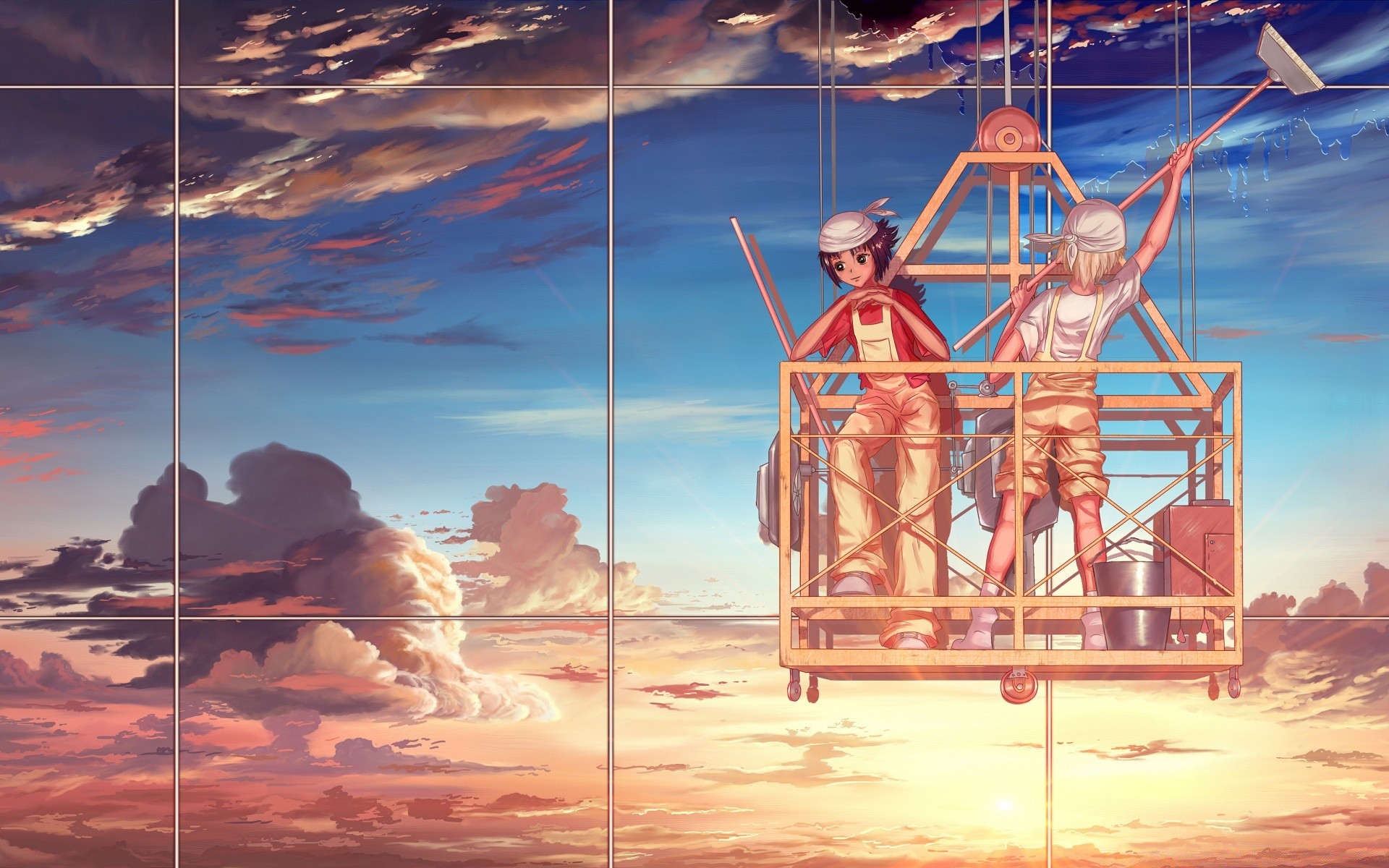 Niebieskowłosa Wróżka w stylu anime otoczona zwierzętami, ptakami i bajkowymi stworzeniami