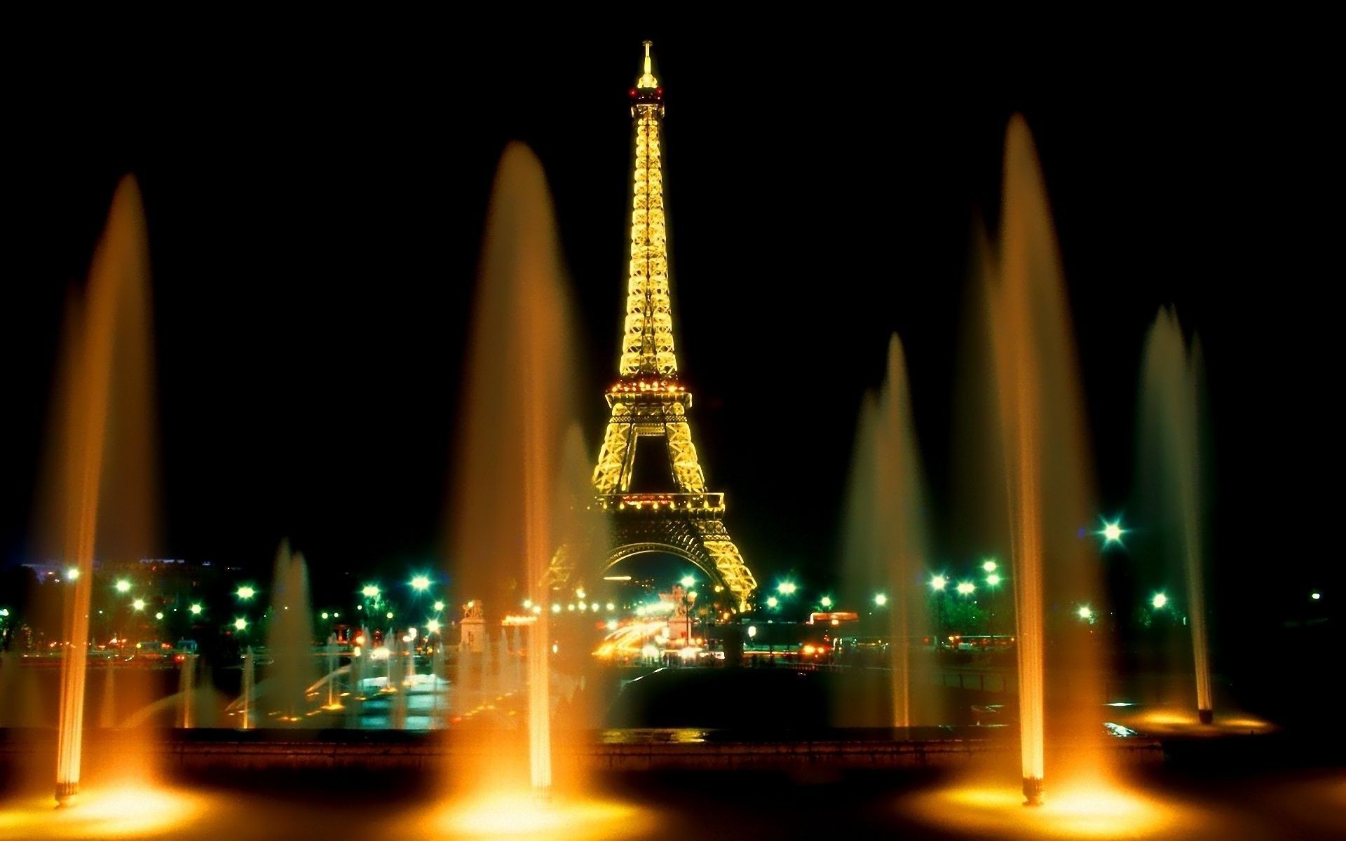 Paris jets Paryż Francja fontanna wodna France latarnie