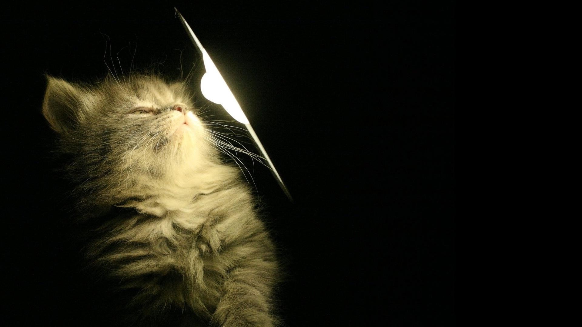 Kotek który patrzy na żarówkę