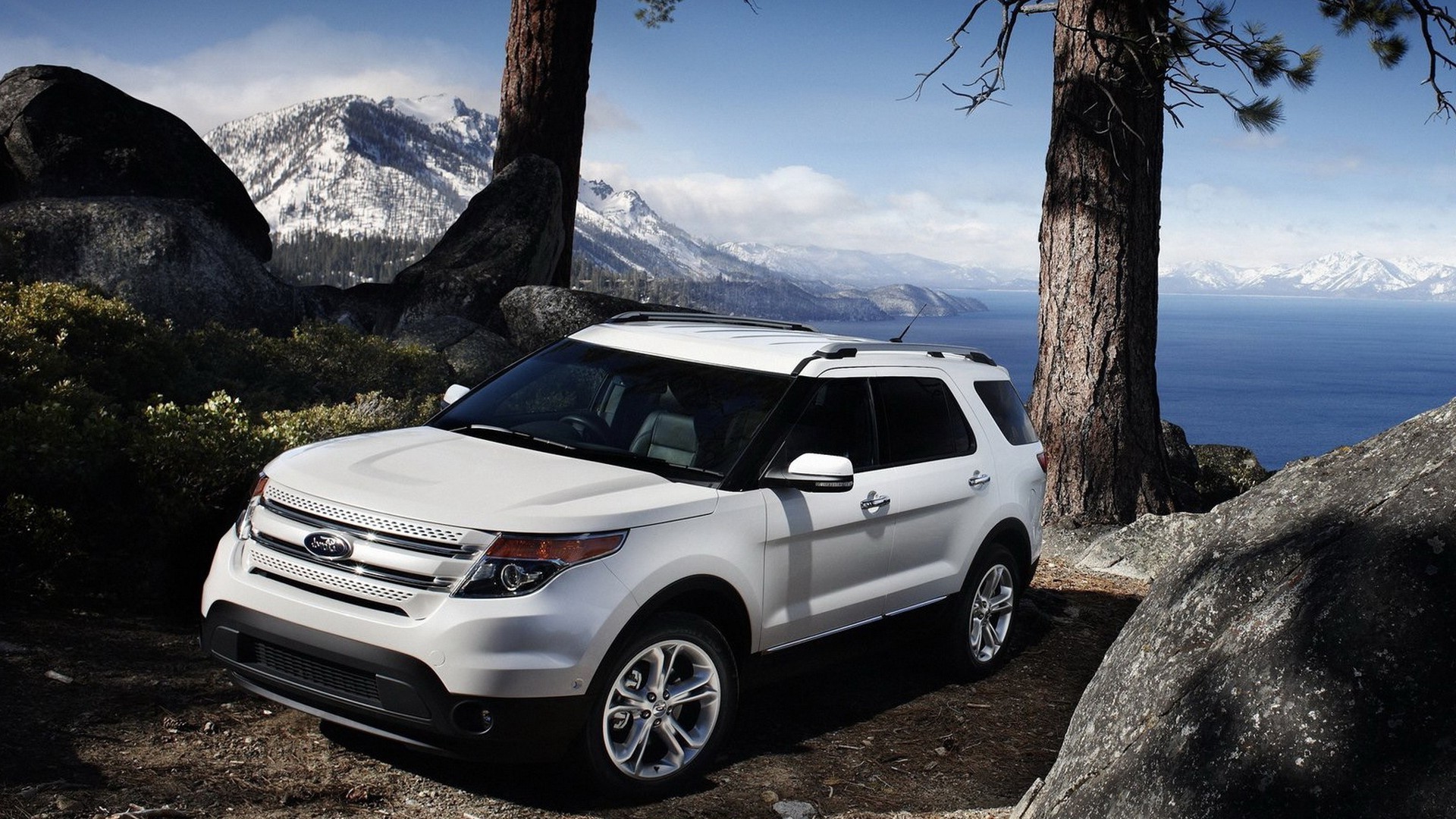 SUV Ford bierze udział w wyścigu. Duży czerwony samochód