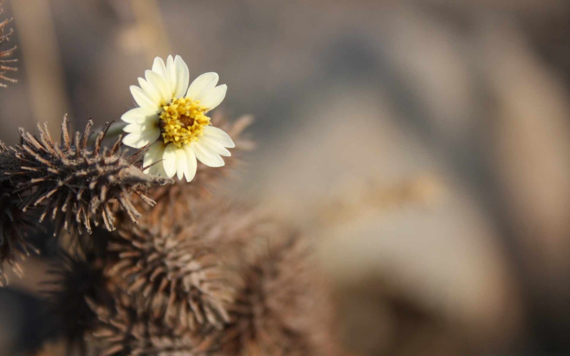 Rozmyte tło z kwiatem na kolcu