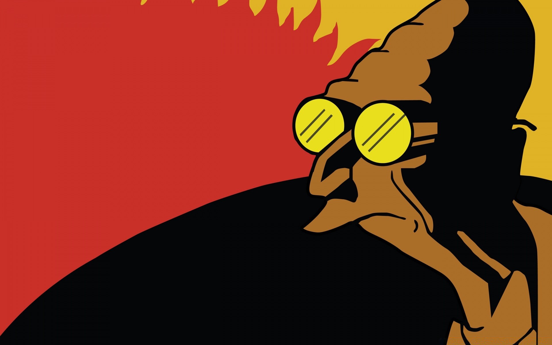 Ilustracja robota z kreskówki Futurama na niebieskim, jednolitym tle