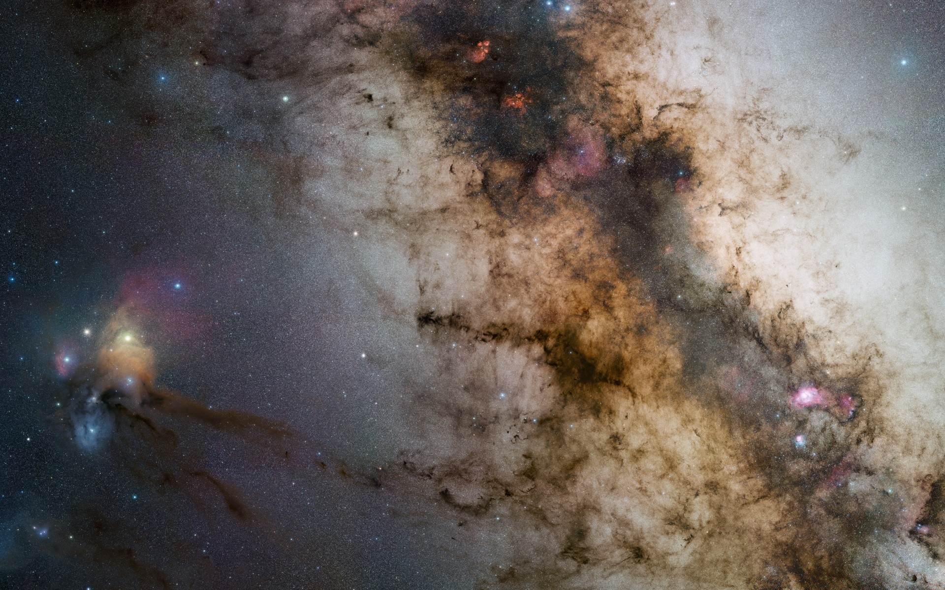 Jasny czerwony księżyc w galaktyce z gwiazdami