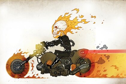 Ghost Rider ściga się na moticyklu w ogniu