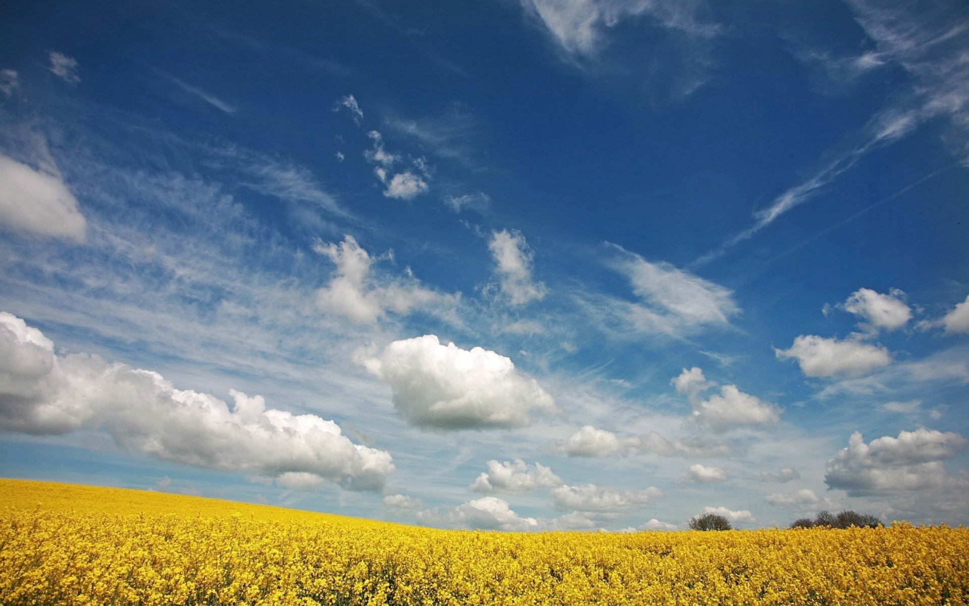 Pole z żółtymi kwiatami. Błękitne niebo