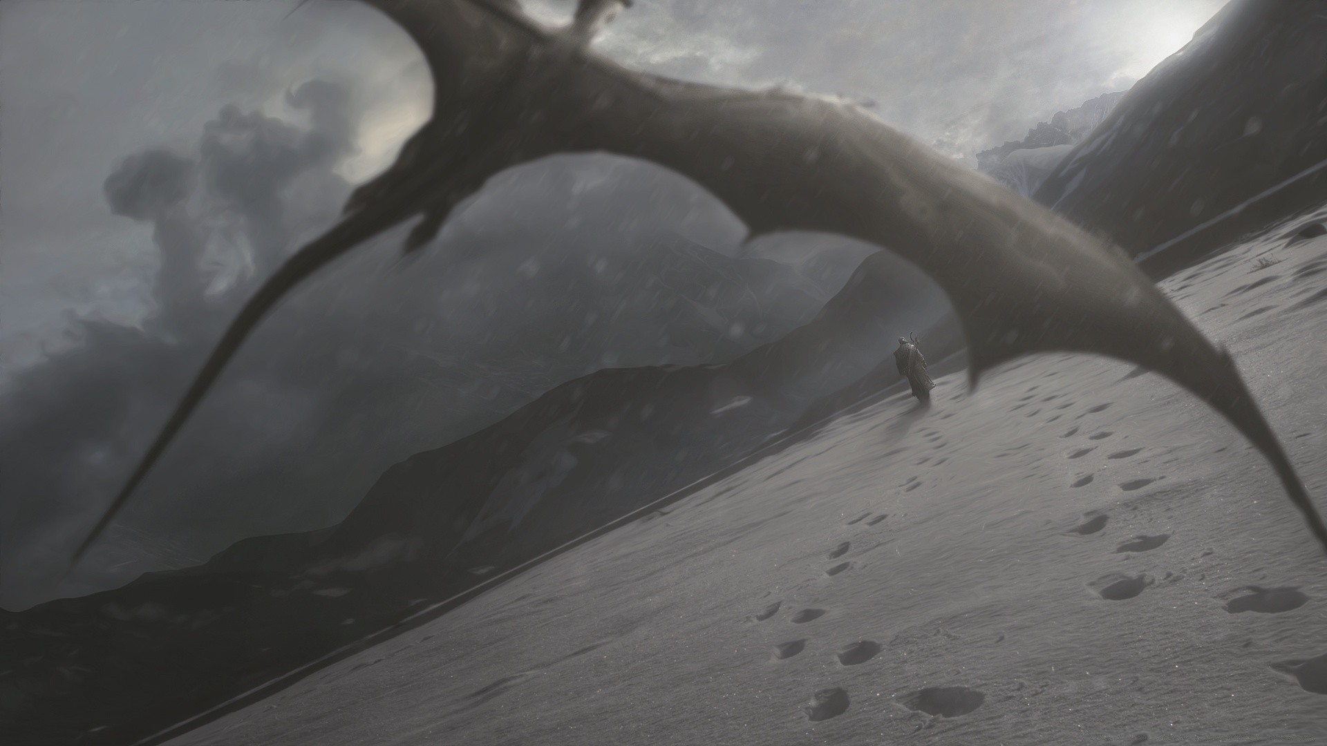 Fragment serialu Gra o tron. Scena z latającym smokiem