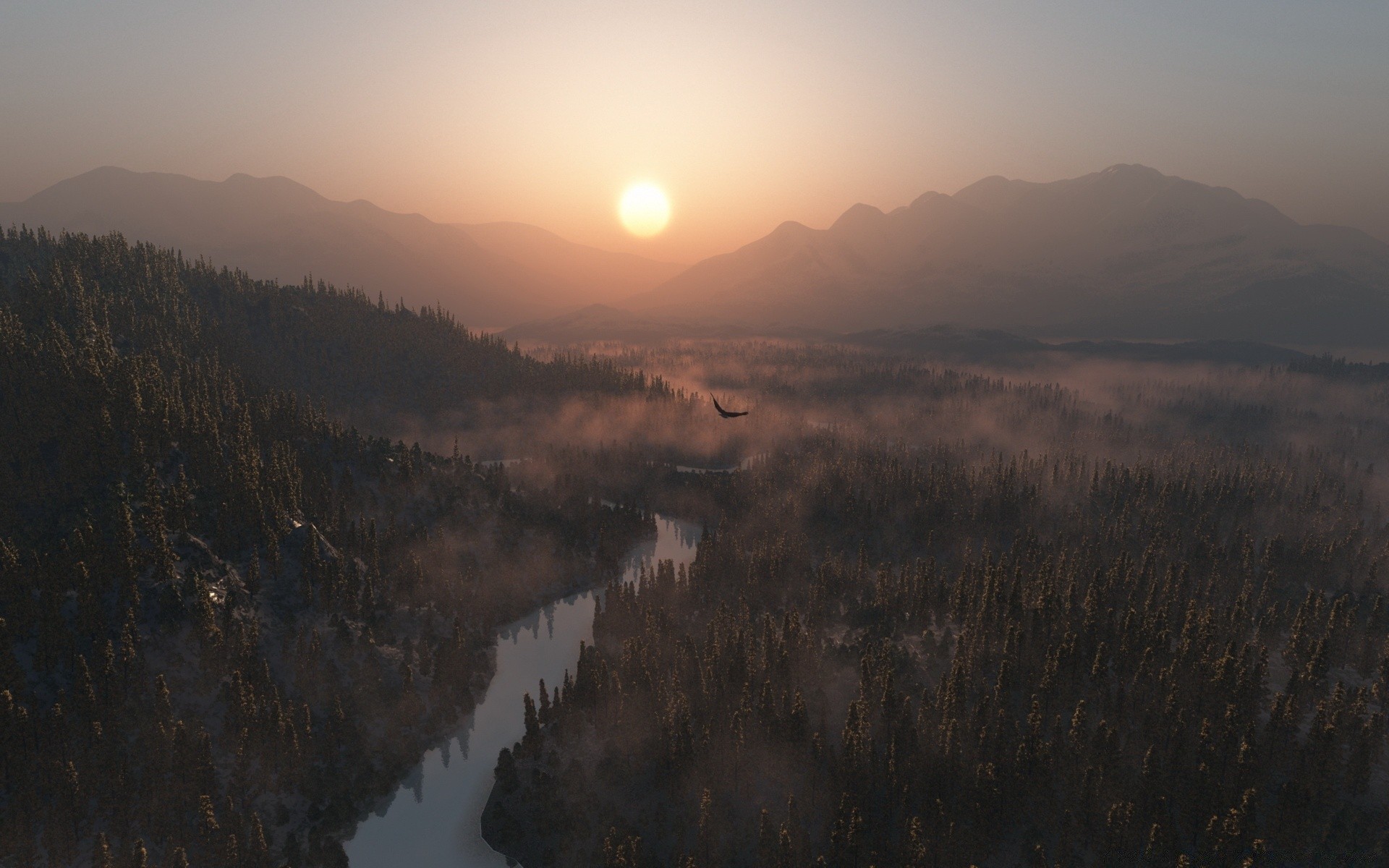Świt nad lasem i górami