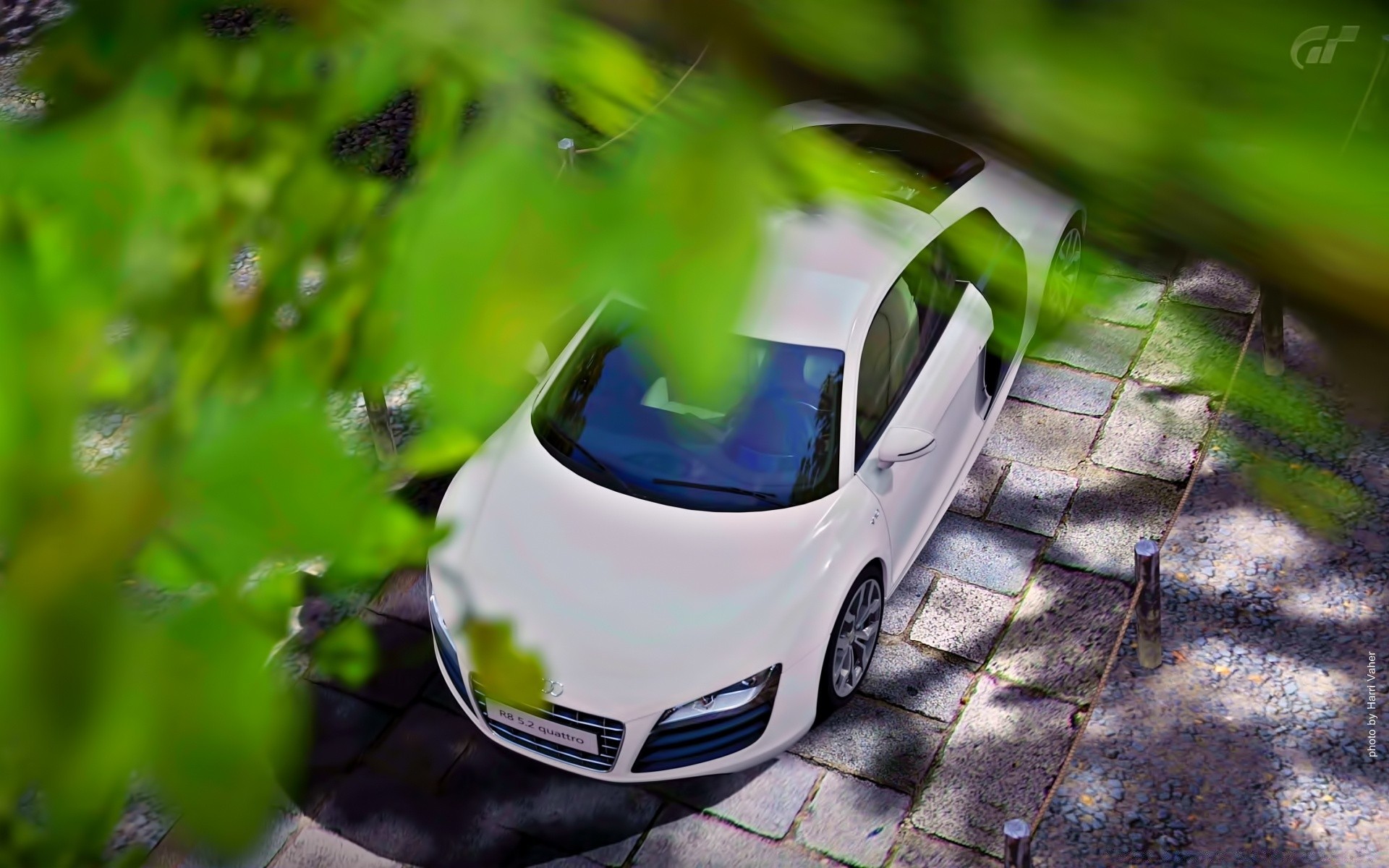 Biały samochód w promieniach słońca