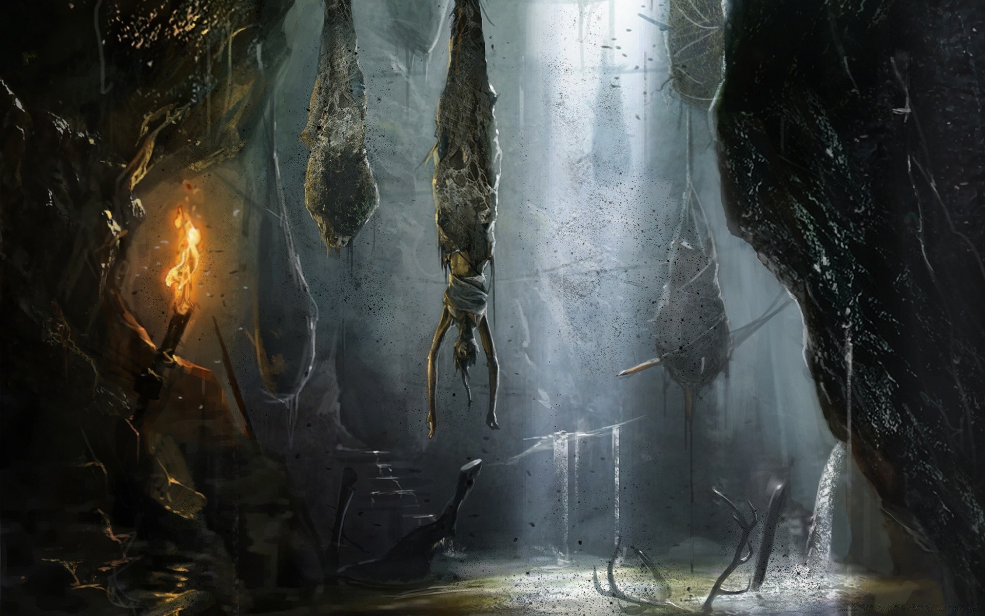 Kokony z ciałami z gry tomb raider